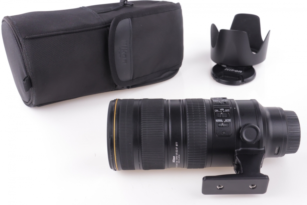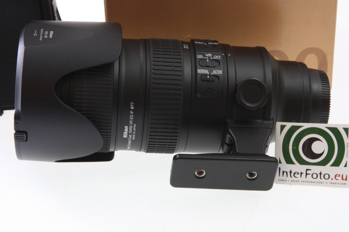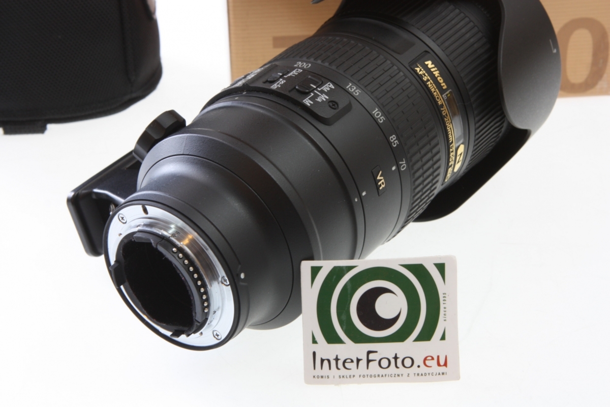 Gwarancja: 3wytarcia lakieru głównie na obejmie statywowejNikkor 70-200/2.8 G ED AF-S VR II to profesjonalny teleobiektyw o zmiennej ogniskowej:70-200mm, dużej jasności: f/2,8 z wbudowanym systemem redukcji drgań oraz układem optycznym z powłokami nanokrystalicznymi. Wykonana ze stopu magnezu obudowa gwarantuje wysoką trwałość.