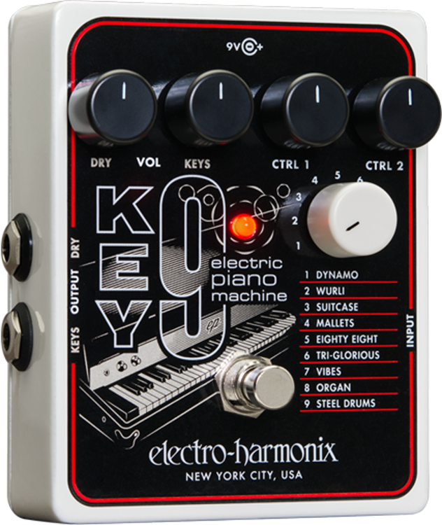 Uzupełnienie potężnej trylogii symulatorów brzmień klawiszowych, czyli efektów B9 i C9 Organ Machine. Nowy KEY9 emuluje najbardziej rozpoznawalne brzmienia pianin cyfrowych na świecie. Z 9 presetami do wyboru z łatwością przekształcisz brzmienie swojej gitary i uzyskasz charakterystyczny sound znany na przykład z „Riders on the Storm”.