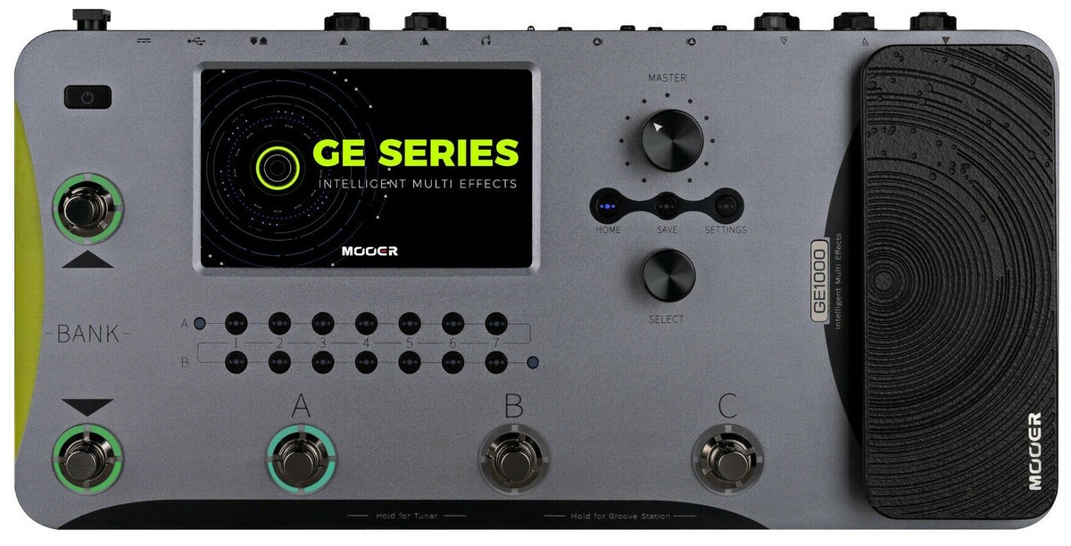 MOOER nie skupił się wyłącznie na kreowaniu brzmienia w GE1000, doskonale podkreśla to zintegrowany zestaw narzędzi rytmicznych Groove Station, składający się z automatu perkusyjnego i loopera. Funkcje te zostały zaprojektowane zarówno do niezależnej pracy, jak i w synchronizacji tempa, dzięki czemu można dostosować je do wszystkich rodzajów ćwiczeń czy jam session. Looper zawiera nawet automatyczne funkcje nagrywania i nabicia, aktywując nagrywanie w pętli po wykryciu sygnału wejściowego, zapewniając wyjątkowe wrażenia podczas korzystania z loopera bez użycia rąk. MOOER zawsze wyróżniał się dostarczaniem innowacyjnych rozwiązań interfejsu użytkownika, a GE1000 zamierza kontynuować ten trend. Urządzenie wyposażone jest w 5-calowy, wysokiej jakości kolorowy ekran dotykowy, zaprojektowany z myślą o intuicyjnej pracy z wieloma efektami, przy jednoczesnym zachowaniu ulubionych cech znanych z poprzednich modeli GE. Znajdziemy tu charakterystyczne wielofunkcyjne pokrętła sterujące MOOER, przyciski i pedał ekspresji szybkiego dostępu.