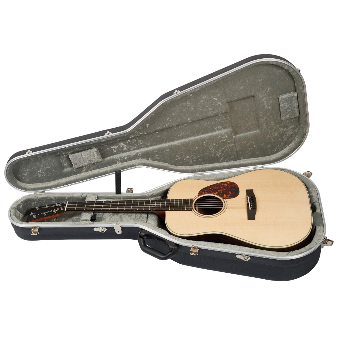 Charakter akustyka bierze się w dużej mierze z drewna wykorzystanego na korpus. We wspomnianym akustyku są one bardzo dobrej klasy. Jak bardzo? Dokładnie AAA. Płyta wierzchnia jest stworzona z najwyższej klasy litego świerku Sitka, a tył oraz boki z litego palisandru indyjskiego. Uwagę przykuwają też liczne elementy ozdobne, jak choćby żyłka w kolorze kości słoniowej, podkreślona wstawkami o wzorze Herringbone. Oczy cieszy też elegancka podwójna rozeta w kolorach czarnym i białym okraszona licznymi wstawkami z abalone. Detale, takie jak mostek i jego kołki wykonane są z hebanu. Warto też wspomnieć, że całość instrumentu pokryta jest ręcznie aplikowanym wykończeniem Full-Pore Vintage, które zapewnia doskonałą ochronę powierzchni i jednocześnie podkreśla strukturę drewna. Finalne polerowanie ręczne pozostawia gitarę z atrakcyjną patyną, która przypomina instrumenty muzyczne w dojrzałym wieku.
