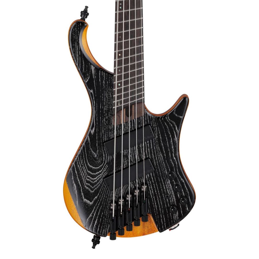 Model EHB1135MS-SKL wyposażono w aktywne przetworniki Bartolini BH2 oraz zaawansowany equalizer Vari-mid z trzema pasmami regulacji. System ten pozwala na precyzyjne kształtowanie brzmienia, oferując możliwości, które zadowolą najbardziej wymagających basistów. Wieloczęściowa szyjka wykonana z połączenia drewna panga panga i orzecha, wzmocniona prętami grafitowymi, zapewnia stabilność i komfort gry. Mostek MR5HS i system strojenia Ibanez custom headpieces gwarantują precyzję strojenia i stabilność instrumentu nawet podczas najbardziej intensywnego użytkowania.