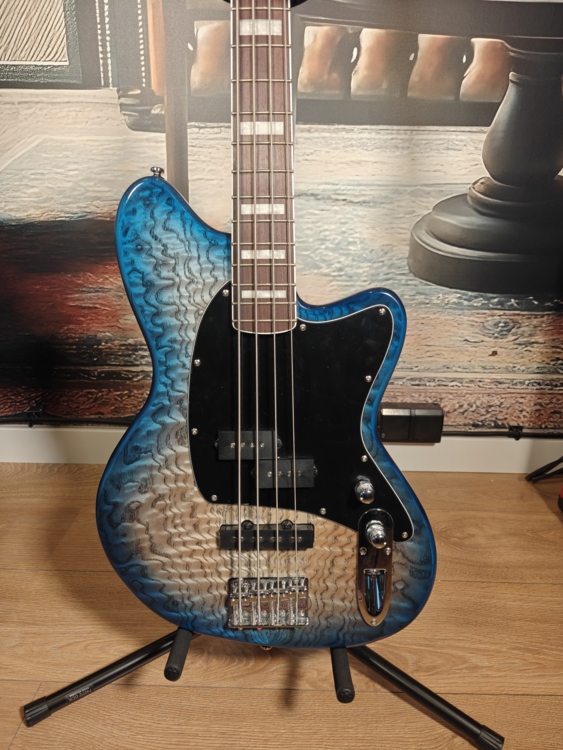 Model TMB400TA-CBS (Talman) nawiązuje do klasycznych konstrukcji gitar basowych, które od lat stanowią standard w branży muzycznej. Jego wyjątkowy kolor Cosmic Blue Starburst przyciąga wzrok i podkreśla indywidualny charakter każdego wykonania. Korpus gitary wykonany z topoli i pokryty fornirem z tamo ash, w połączeniu z lakierowanym wykończeniem, zapewnia nie tylko estetyczny wygląd, ale także wpływa na rezonans i głębię dźwięku.