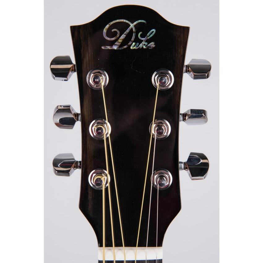 Niemiecka marka Duke powstała z założeniem by produkować możliwie jak najlepsze instrumenty przy jednoczesnym zachowaniu stosunkowo przystępnej cenie. Aby zrealizować ten plan zawiązana została współpracy z wybranymi lutnikami i ścisłej realizacji tego planu, Duke zyskał reputację wśród gitarzystów. Projekt i konstrukcja gitar w siedzibie Duke w Niemczech są na bardzo wysokim poziomie i mogą konkurować z uznanymi europejskimi markami. Ta dbałość o szczegóły znajduje odzwierciedlenie w gitarze elektroakustycznej Duke GA-MC. Specjaliści, którzy odpowiadają za dobór materiałów, wyposażyli ten instrument w wysokiej klasy drewno. Klasyczny Grand Auditorium z górną płytą z litego cedru, mahoniowym tyłem i bokami dopracowanymi do perfekcji. Całość tworzy niezwykle komfortowe brzmienie, pełne charakteru i zapewniające najwyższą jakość. Jest również profesjonalnie wyposażony w najwyższej klasy przetworniki i przedwzmacniacze, aby dopasować najlepszą głośność w każdych warunkach gry.