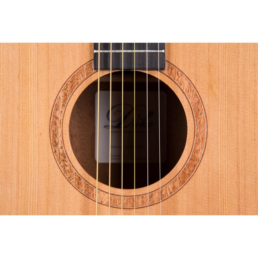 Doskonały Duke GA-MC-CUT-Satin ma płytę wierzchnią wykonaną jest z litego kanadyjskiego cedru. Mahoniowe boczki oraz tył z mahoniową rozetą pierścieniową. Jego gryf jest wykonany z cedru i przymocowany jest do korpusu na 14. progu dla dodatkowej stabilności. Hebanowy most jest wyposażony w hebanowe kołki, siodełko kostne i satynowy lakier akrylowy. Posiada siodło o szerokości 45 mm i mensurę 650 mm, z satynową szyjką i główką z hebanową fornirem na topie.