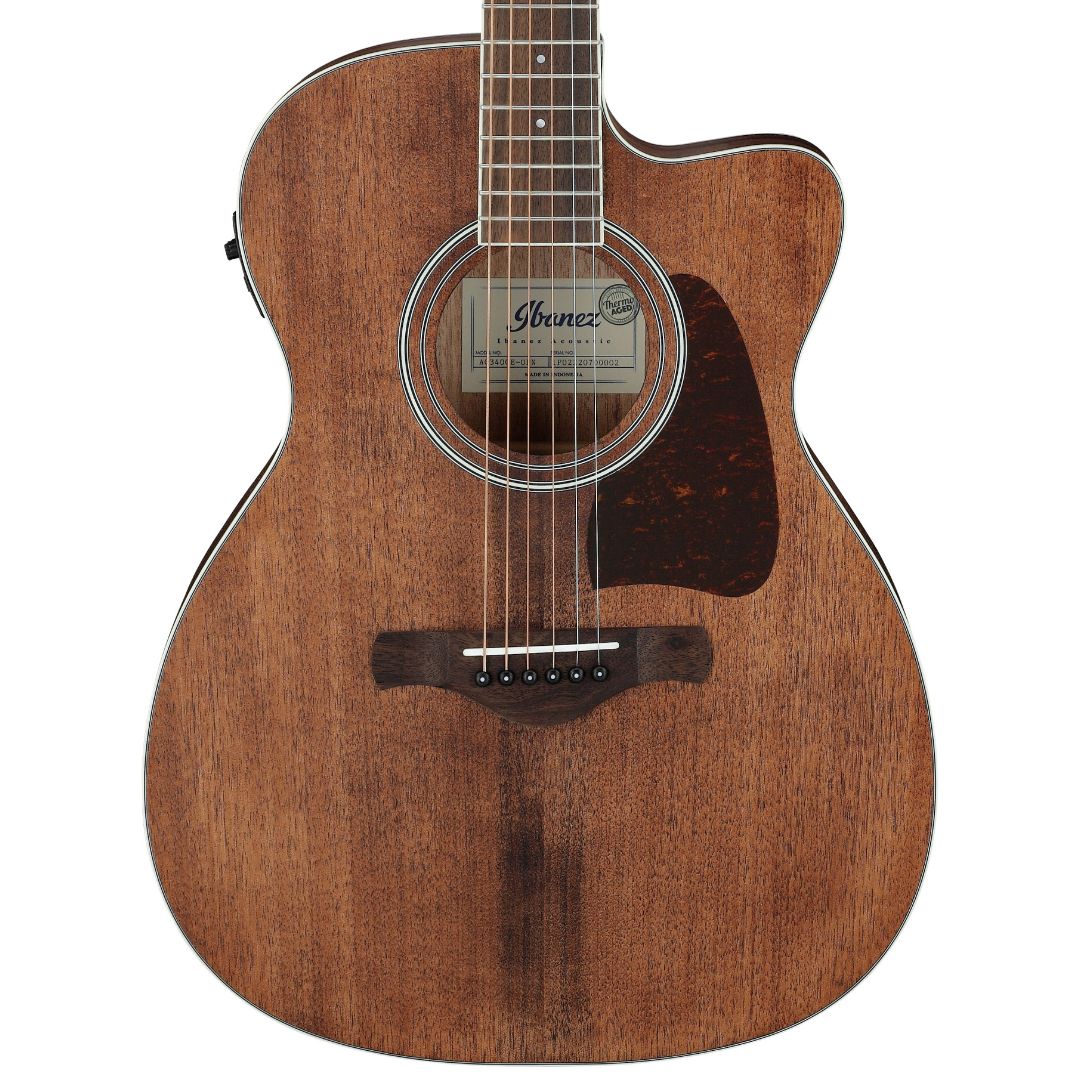 Kluczowe cechy gitary elektroakustycznej Ibanez AC340CE-OPNElektroakustyczna gitara japońskiej firmy Ibanez z serii Artwood dla średniozaawansowanych gitarzystówKorpus typu Grand Concert z wycięciem cutaway wykonany z litego drewna okoume z bokami i tyłem z okoumeGryf z drewna nyatoh z podstrunnicą z ovangkolu zapewniającą komfort podczas gryMostek z termicznie sezonowanego ovangkolu zwiększający stabilność i rezonans instrumentuSystem elektroakustyczny z przetwornikiem Fishman S-Core i przedwzmacniaczem Ibanez AEQ-SP2 z tuneremZbalansowane wyjścia XLR i 1/4 cala dla różnych zastosowań scenicznych i studyjnychSpecjalne kołki Ibanez Advantage zapewniające lepsze trzymanie strun i łatwiejszą wymianę Ogólny opisJapońska precyzja w świecie gitarIbanez to marka, która nie wymaga przedstawienia w świecie instrumentów muzycznych. Japoński gigant od lat utrzymuje swoją pozycję w branży muzycznej, oferując szeroki wachlarz gitar, od akustycznych po elektryczne modele z serii RG, które są wybierane przez muzyków na całym świecie. Seria Artwood została zaprojektowana, aby połączyć najlepsze tradycyjne elementy z nowoczesną konstrukcją gitary. Technologia rozwija się w zawrotnym tempie, a świat budowy gitar nie jest wyjątkiem. Tworząc serię Artwood, producent uszanował bogatą tradycję gitary akustycznej, dodając jednocześnie nowoczesne interpretacje w nieustannym poszukiwaniu doskonałego brzmienia. Model AC340CE-OPN to elektroakustyczna gitara, która zachwyca zarówno swoim wyglądem, jak i możliwościami dźwiękowymi, stanowiąc idealny wybór dla średniozaawansowanych gitarzystów poszukujących instrumentu o wyjątkowym charakterze.Konstrukcja pełna ciepłych brzmieńGitara elektroakustyczna AC340CE-OPN wyróżnia się solidną konstrukcją, która zapewnia wyjątkowe brzmienie. Korpus typu Cutaway Grand Concert wykonany został z litego drewna Okoume na górnej płycie, co nadaje instrumentowi pełne, ciepłe tony średniego zakresu oraz jasne brzmienie. Boki i tył również wykonane z Okoume generują drewniany, ciepły dźwięk podczas delikatnej gry lub przy grze palcami, a także zapewniają wyraziste wysokie tony ze znakomitą projekcją podczas gry techniką strumming. Gryf z drewna Nyatoh dostarcza bogatych tonów średnio-niskich, co w połączeniu z podstrunnicą z Ovangkol zapewnia większy komfort gry. Mostek wykonany w technologii Thermo Aged z drewna Ovangkol jest lekki i twardy, zapewniając stabilność oraz lepszy rezonans z wzmocnionymi niskimi i średnio-niskimi tonami.Elektronika na najwyższym poziomieModel AC340CE-OPN został wyposażony w wysokiej jakości elektronikę, która pozwala na pełne wykorzystanie potencjału instrumentu podczas występów na żywo. Preamp Ibanez AEQ-SP2 z wbudowanym tunerem zapewnia doskonałą reprodukcję dźwięku i kontrolę charakterystyki tonalnej przy jednoczesnej łat