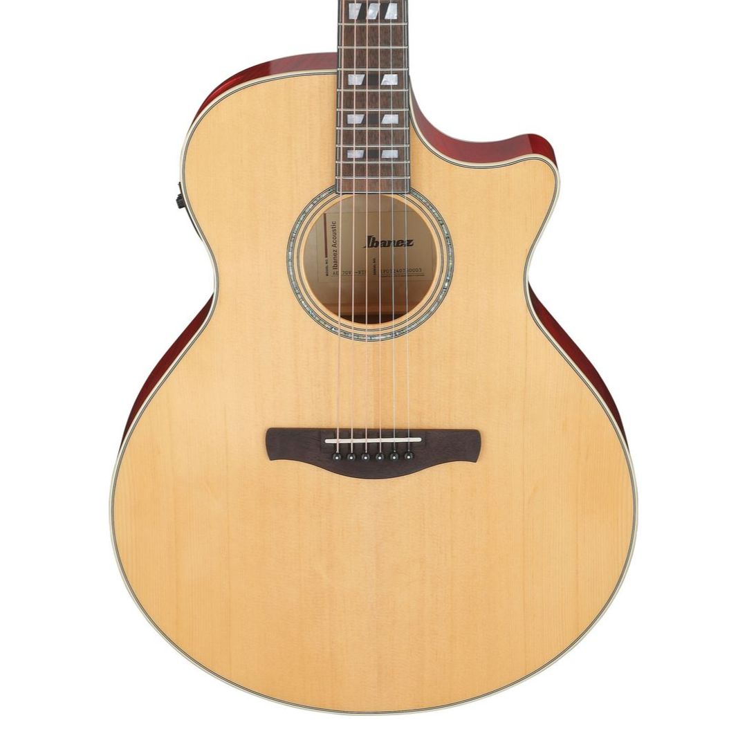 Model AE170-NTR to kwintesencja filozofii Ibanez, gdzie tradycyjne rzemiosło łączy się z nowoczesnymi rozwiązaniami technologicznymi. Gitara elektroakustyczna została stworzona z myślą o muzykach poszukujących własnego, niepowtarzalnego brzmienia. Instrument wyróżnia się korpusem wykonanym z litego świerku sitka oraz klonu płomienistego, które wspólnie tworzą harmonijne połączenie zapewniające bogate i zrównoważone brzmienie. Zastosowanie technologii Thermo Aged w mostku z owangkolu nadaje instrumentowi charakterystyczną głębię dźwięku.