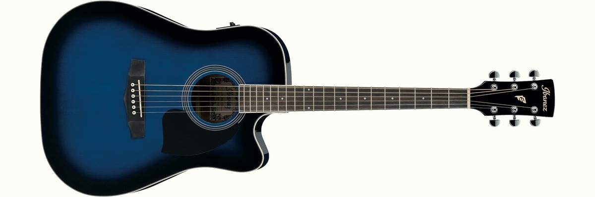 PF15ECE firmy Ibanez to gitara elektro-akustyczna typu dreadnought wykonana ze świerku, okoume i Nyatoh z niebieskim wykończeniem na wysoki połysk. Korpus drednota z pojedynczym wycięciem zapewnia mocny i zrównoważony dźwięk akustyczny. Gitara doskonale nadaje się do gry solo lub z pełnym zespołem. PF15ECE ma świerkowy top oraz Okoume z tyłu i po bokach, a także mahoniowy gryf, podstrunnicę i mostek z nandu, chromowane zamknięte klucze olejowe, kołki na mostku Ibanez Advantage i coś tam jeszcze 😉 W przypadku elektroniki gitara jest wyposażona w przetwornik Ibanez Undersaddle oraz przedwzmacniacz Ibanez AEQ-2T z 2-pasmowym korektorem i wbudowanym tunerem. PF15ECE jest wyposażony fabrycznie w powlekane struny z brązu.