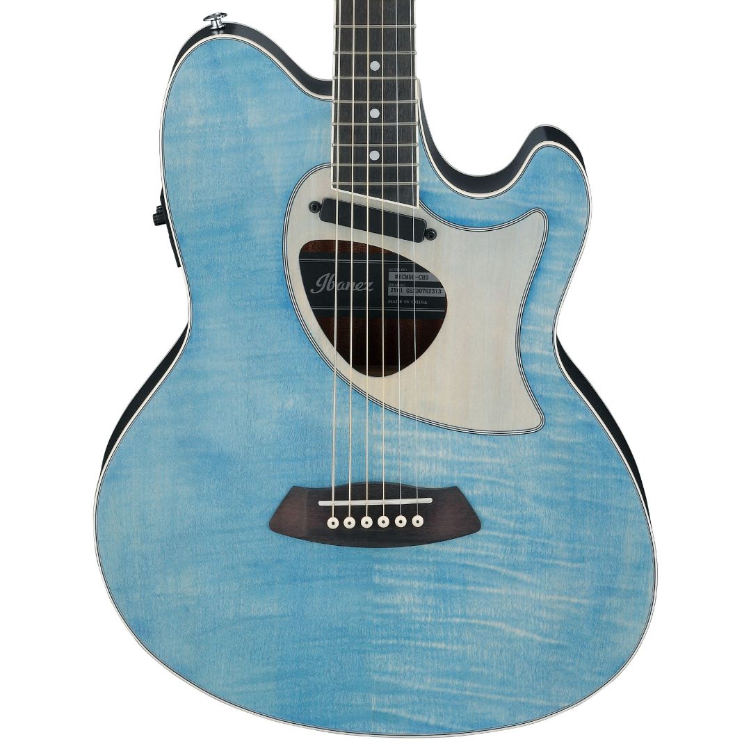 Kluczowe cechy gitary elektroakustycznej Ibanez Talman TCM50FM-ODBElektroakustyczna gitara japońskiej firmy Ibanez z charakterystycznym podwójnym cutawayem TalmanPłyta wierzchnia z klonu płomienistego zapewniająca jasne i wyraziste brzmienieBoki i tył wykonane z sapele nadającego gitarze ciepłe tony średnicy i jasne wysokie częstotliwościGryf z drewna okoume o długości 650 mm zapewniający wygodę podczas gryWyposażona w przetwornik magnetyczny Ibanez AP2 wiernie oddający naturalne brzmieniePrzedwzmacniacz Ibanez AEQ-2TM z wbudowanym tunerem działającym bez podłączania instrumentuIdealna propozycja dla początkujących gitarzystów poszukujących oryginalnego kształtu Ogólny opisJapońska precyzja w każdym dźwiękuIbanez to marka, która nie potrzebuje przedstawienia w świecie instrumentów muzycznych. Japoński gigant zdobył uznanie muzyków na całym świecie dzięki szerokiej gamie gitar – od akustycznych perełek po elektryczne bestie z serii RG. Talman TCM50FM-ODB to elektroakustyczna gitara, która wyróżnia się na tle konkurencji charakterystycznym, dwuwykrojowym kształtem korpusu. Jest to swoisty buntownik w świecie tradycyjnych gitar akustycznych, przyciągający uwagę gitarzystów elektrycznych, którzy pragną wzbogacić swój arsenał o wymiar akustyczny. Instrument ten łączy w sobie elegancję klasycznej gitary akustycznej z praktycznością i wygodą gry, typową dla gitar elektrycznych. Dzięki temu połączeniu, Talman TCM50FM-ODB staje się idealnym wyborem zarówno dla początkujących gitarzystów poszukujących swojego pierwszego instrumentu, jak i dla doświadczonych muzyków, którzy docenią jego wszechstronność i niepowtarzalny charakter.Wyjątkowe brzmienie i konstrukcjaGitara elektroakustyczna Ibanez Talman TCM50FM-ODB zachwyca nie tylko oryginalnym kształtem, ale również starannie dobranymi materiałami, które wpływają na jej wyjątkowe brzmienie. Top wykonany z płomienistego klonu nadaje instrumentowi nie tylko atrakcyjny wygląd, ale również zapewnia jasne i precyzyjne brzmienie. Tył i boki z drewna sapele oferują pełne, ciepłe tony średniego zakresu, które doskonale uzupełniają się z jasnością klonowego topu. Gitara wyposażona jest w wygodny gryf z drewna okoume, który zapewnia komfort gry nawet podczas długich sesji. Podstrunnica i mostek wykonane z purpleheart dodają instrumentowi charakterystycznego wyglądu, jednocześnie wzbogacając brzmienie o bogate tony średniego zakresu i wyraźne wysokie częstotliwości. Całość dopełniają innowacyjne kołki Ibanez Advantage, które ułatwiają wymianę strun i zapobiegają ich wysuwaniu się podczas gry.Elektronika na najwyższym poziomieIbanez Talman TCM50FM-ODB wyposażono w zaawansowany system elektroakustyczny, który pozwala na uzyskanie naturalnego brzmienia gitary akustycznej podczas występów na scenie lub nagrań w studio. Sercem tego sy