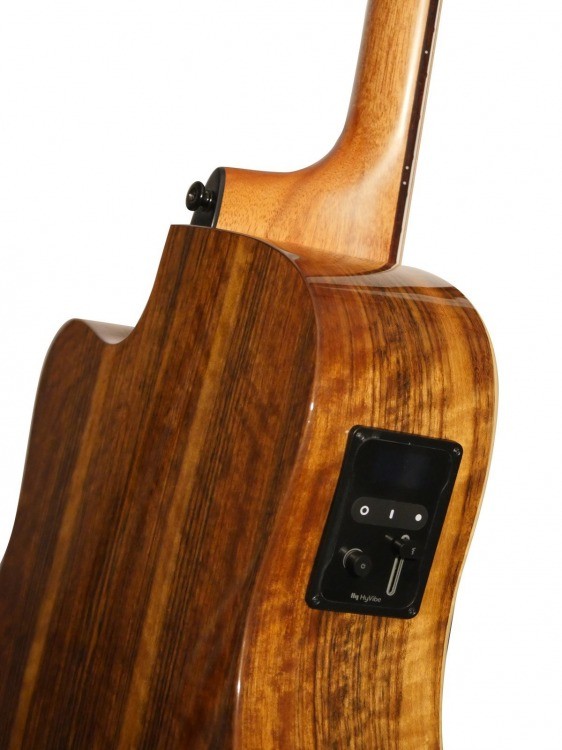 Smart Guitar LAG HyHibe THV20DCE daje gitarzystom otwartą drogę do odkrywania wszelkich możliwości, jakie oferuje system HyVibe. Płyta wierzchnia instrumentu została wykonana ze świerku (Engelmann Spruce), dzieki któremu uzyskujemy silne, pełne brzmienie. Na gitarze THV20DCE można mocno kostkować lub pianissimo grać bez kostki. Wąski profil gryfu sprawia, że gra na gitarze jest bardzo komfortowa. Boki i tył instrumentu z drewna Ovangkol sprawiają że gitara jest wyjatkowow atrakcyjna, a co ważniejsze posiada bogate brzmienie.