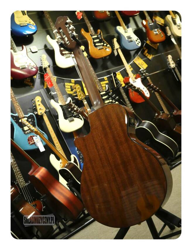 Gryf jest wykonany z Nyatoh, a podstrunnica z orzecha z 20. progami