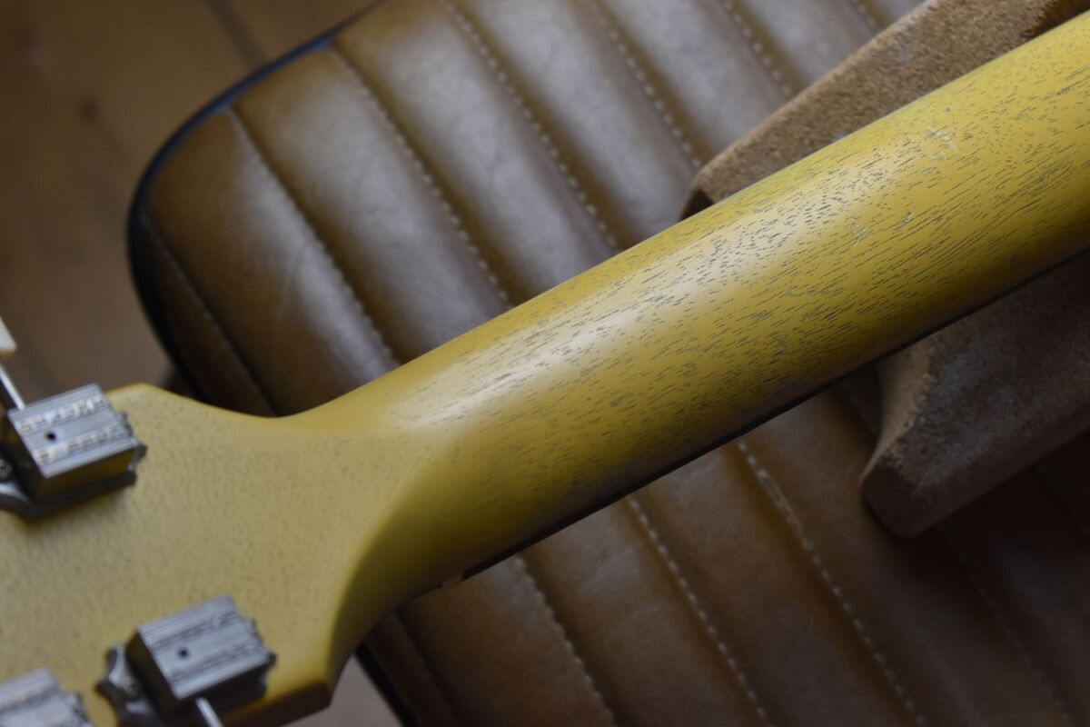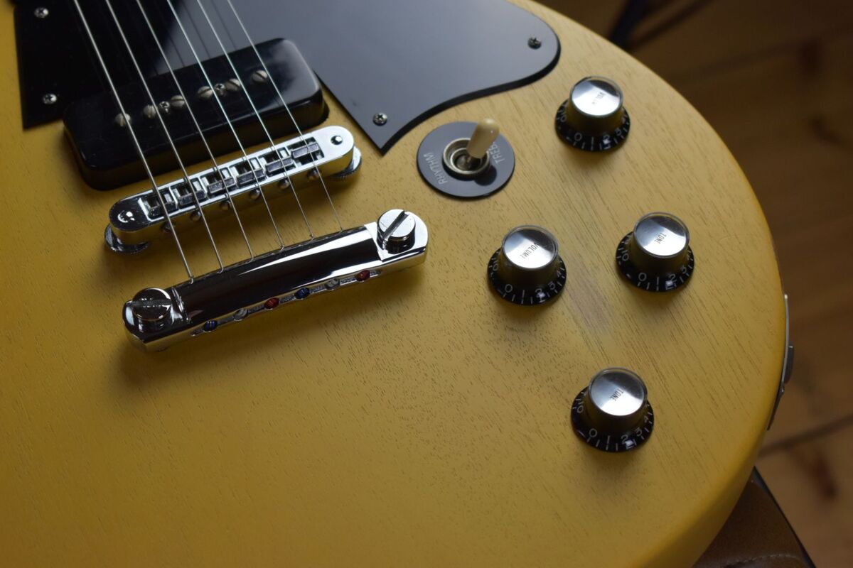 Wizualnie, drobne ślady użytkowania są estetyczne i, jak wspomniano, podkreślają vintage’owy charakter gitary. Gryf w kształcie litery C z lat 60. o smukłym stożku i kształcie litery C dobrze leży w dłoni, a wszystkie 22 progi noszą ślady żywotności. Elektronika działa bez zarzutu, a przetworniki P-90 zapewniają klasyczne brzmienie, pazur i ciepło, z których słyną te gitary.