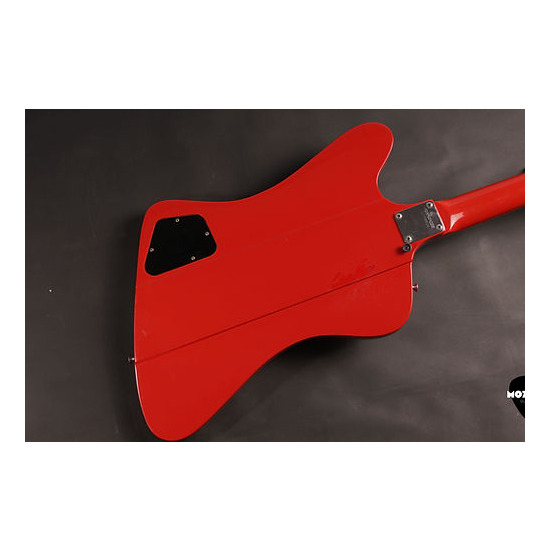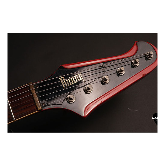 Oferuję gitarę Burny FB-80Z Firebird – klasyczny japoński model inspirowany konstrukcją Gibson Firebird. Ten egzemplarz pochodzi z lat 80. i charakteryzuje się mahoniowym korpusem, bolt-on gryfem z klonu oraz charakterystycznym czerwonym wykończeniem Ferrari Red (FER) z logiem orła na pickguardzie.