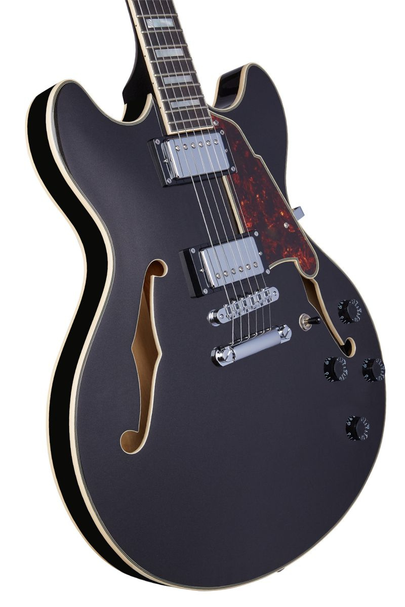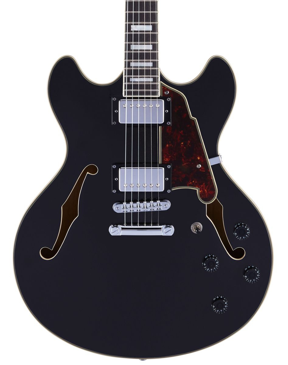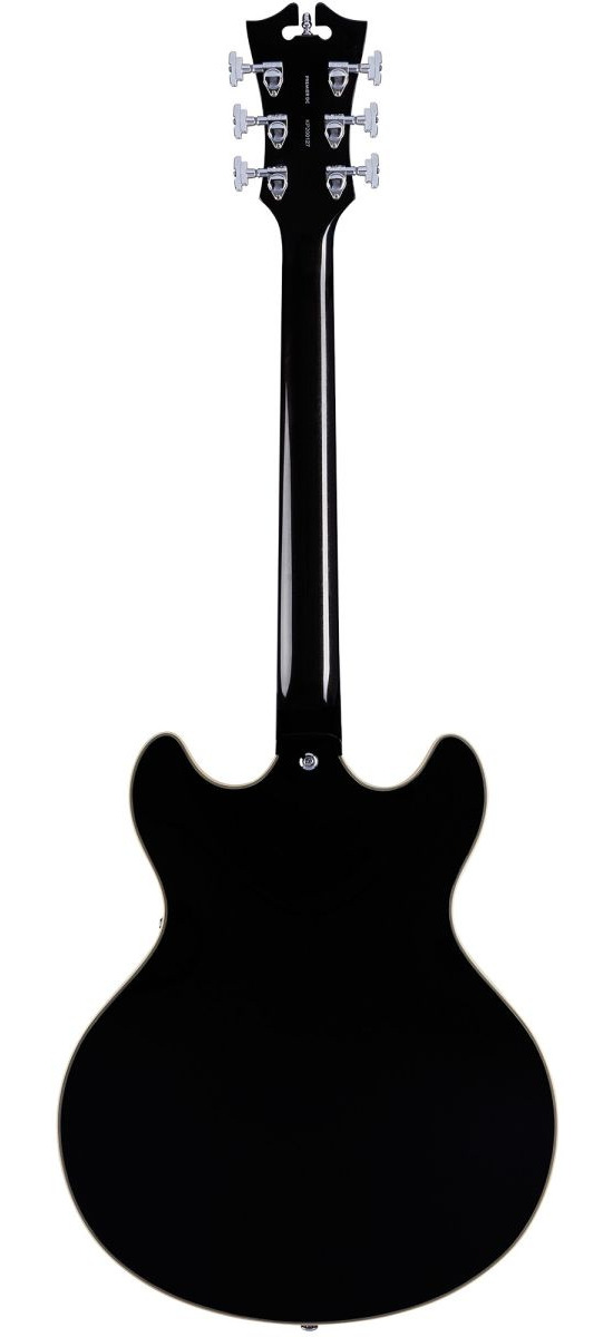 Zaokrąglony, podwójnie wycięty semi-hollow z pełnowymiarowym, ale lekkim blokiem centralnym, DC jest wybitnym projektem semi-hollow D’Angelico.