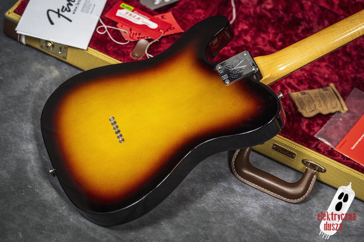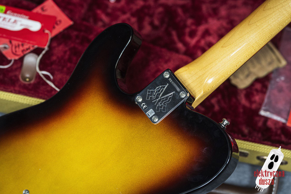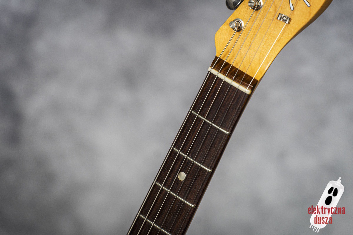 Pod względem wizualnym to oczywiście fenderowska klasyka w wydaniu retro. Gitara wykończona lakierem nitro (tradycyjny trójkolorowy sunburst) i wyposażona w poprawny historycznie osprzęt.