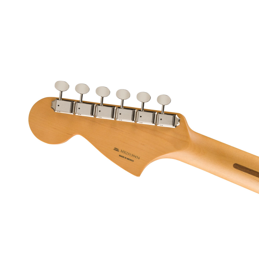 Gitara Fender Player II Jaguar RW AQB wyróżnia się ergonomiczną konstrukcją. Korpus wykonany z olchy został odpowiednio wyprofilowany, zapewniając wygodę podczas długich sesji grania. Gryf o profilu Modern C doskonale leży w dłoni, umożliwiając swobodne poruszanie się po całej jego długości. Podstrunnica z palisandru o promieniu 9,5″ z zaokrąglonymi krawędziami dodatkowo zwiększa komfort gry. Te cechy sprawiają, że Jaguar jest idealnym wyborem dla gitarzystów, którzy cenią sobie wygodę i precyzję podczas gry.