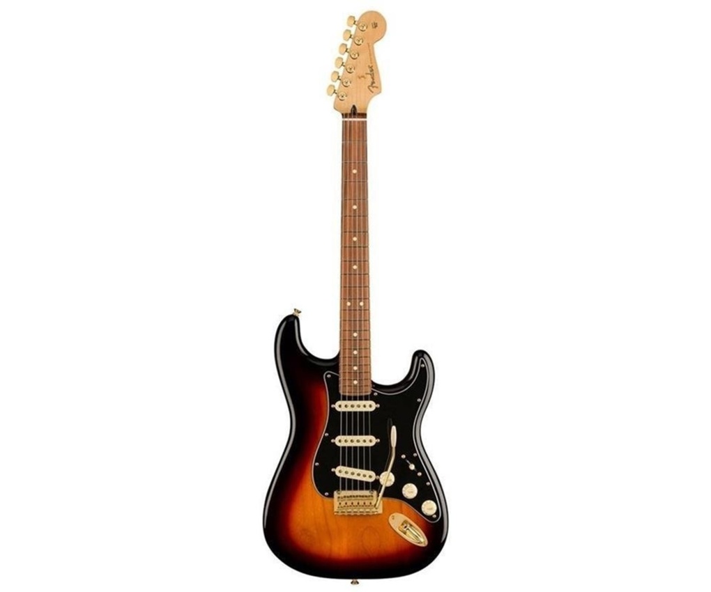 Poznaj wyjątkową edycję limitowaną gitary Fender Player Stratocaster PF 3-Color Sunburst z złotym osprzętem — elegancja połączona z klasycznym brzmieniem Strata.