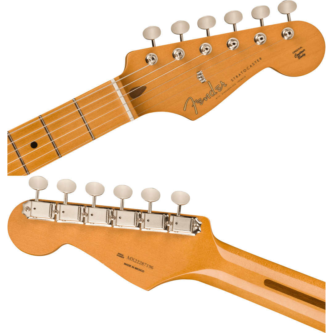 Model Vintera II 50s Stratocaster MN BLK to gitara elektryczna, która przynosi do życia nieśmiertelne brzmienie lat 50-tych. Wyposażona w korpus z olchy i gryf z klonu, ta gitara dostarcza klasycznego brzmienia Fendera, pełnego dynamiki i klarowności. Profil gryfu Mid 50s Soft V zapewnia wygodny chwyt, który idealnie leży w dłoni, podczas gdy podstrunnica o promieniu 7.25″ z wysokimi progami vintage zapewnia komfort gry.