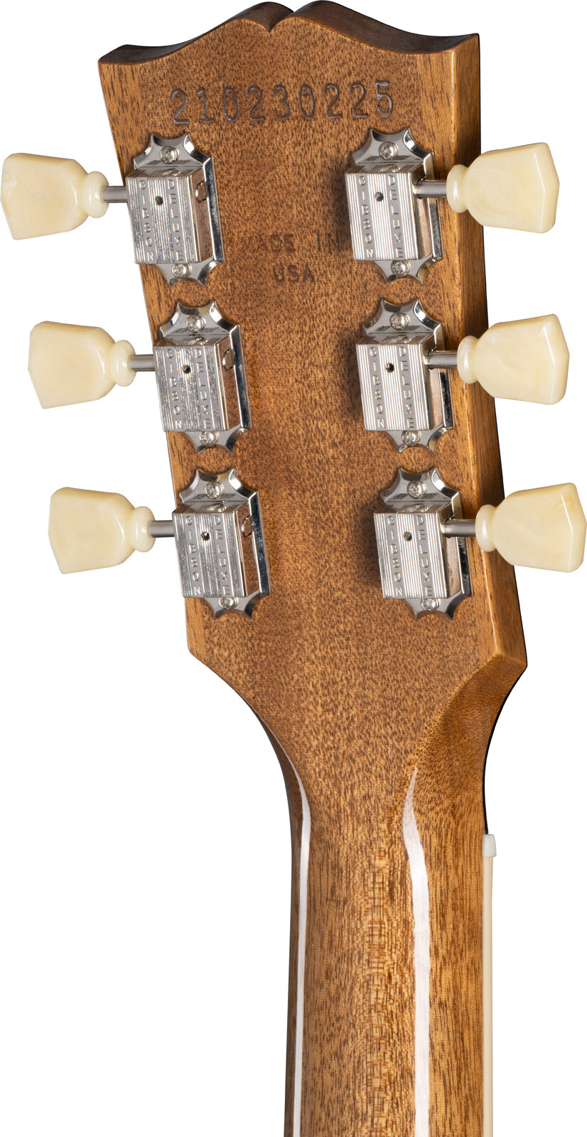 W kwestii osprzętu: instrument otrzymał klasyczny mostek ABR-1 Tune-O-Matic, aluminiowy strunociąg Stop Bar, klucze Vintage Deluxe i złote pokrętła Top Hat.