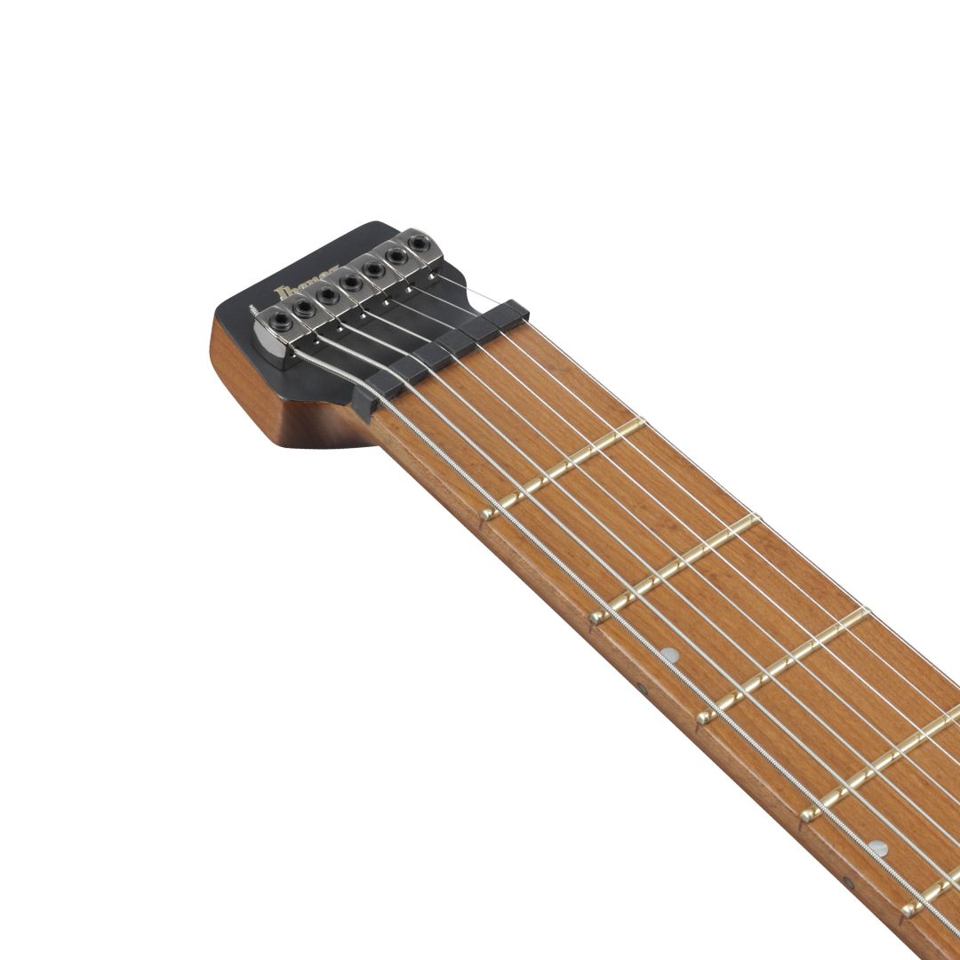 Gitara elektryczna Ibanez Q547-BMM wyróżnia się przemyślaną konstrukcją, która zapewnia wyjątkowy komfort podczas gry. Korpus wykonany z drewna nyatoh zapewnia bogate brzmienie w zakresie średnich i niskich częstotliwości. Pięcioczęściowy gryf Wizard C z prażonego klonu i bubingi oferuje neutralny kształt, który sprawdzi się w różnych stylach gry – nie jest ani zbyt gruby, ani zbyt cienki. Podstrunnica z prażonego klonu ptasie oko nadaje instrumentowi egzotycznego wyglądu, a jednocześnie zapewnia zbalansowany atak i bogaty sustain. Gitara posiada 24 jumbo progi JESCAR EVOgold, które charakteryzują się jasnym brzmieniem, trwałością i płynnym bendowaniem. Dla fanów lekkich gitar model ten stanowi idealne rozwiązanie – dzięki konstrukcji bez główki jest znacznie lżejszy od tradycyjnych instrumentów.
