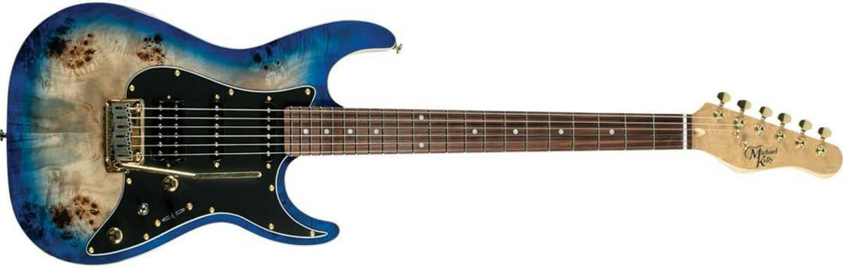Michael Kelly Custom Collection 60 Blue Burst to gitara elektryczna typu stratocaster, która posiada korpus wykonany z drewna korina oraz klonowy top. Na podstrunnicę wykonaną z Pau Ferro nabito 22 progi w rozmiarze medium Jumbo. Instrument jest wyposażony w dwa przetworniki single coil oraz jeden humbucker znajdujący się przy ruchomym mostku. Użytkownik ma możliwość rozłączenia cewek humbuckera zmieniając go w trzeci single coil, a dzięki obecności dodatkowego przełącznika można wyłączyć przystawkę przy gryfie.