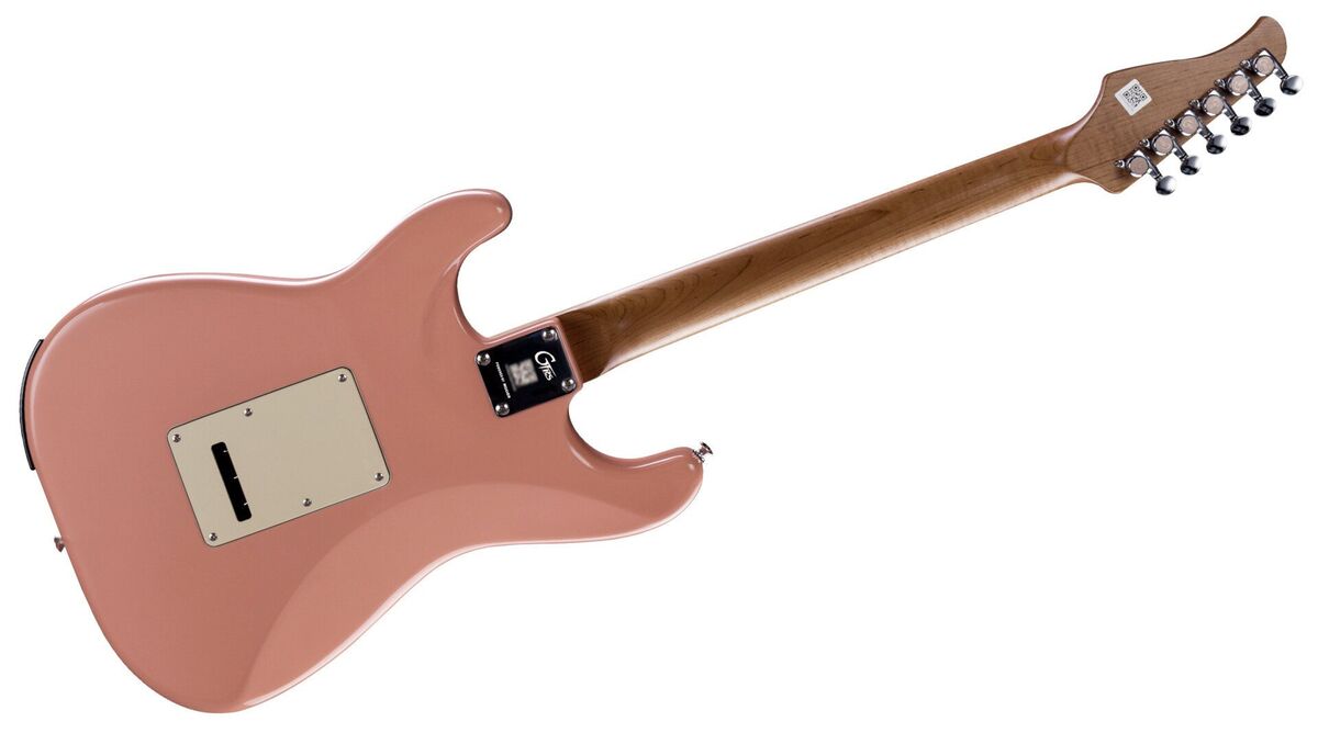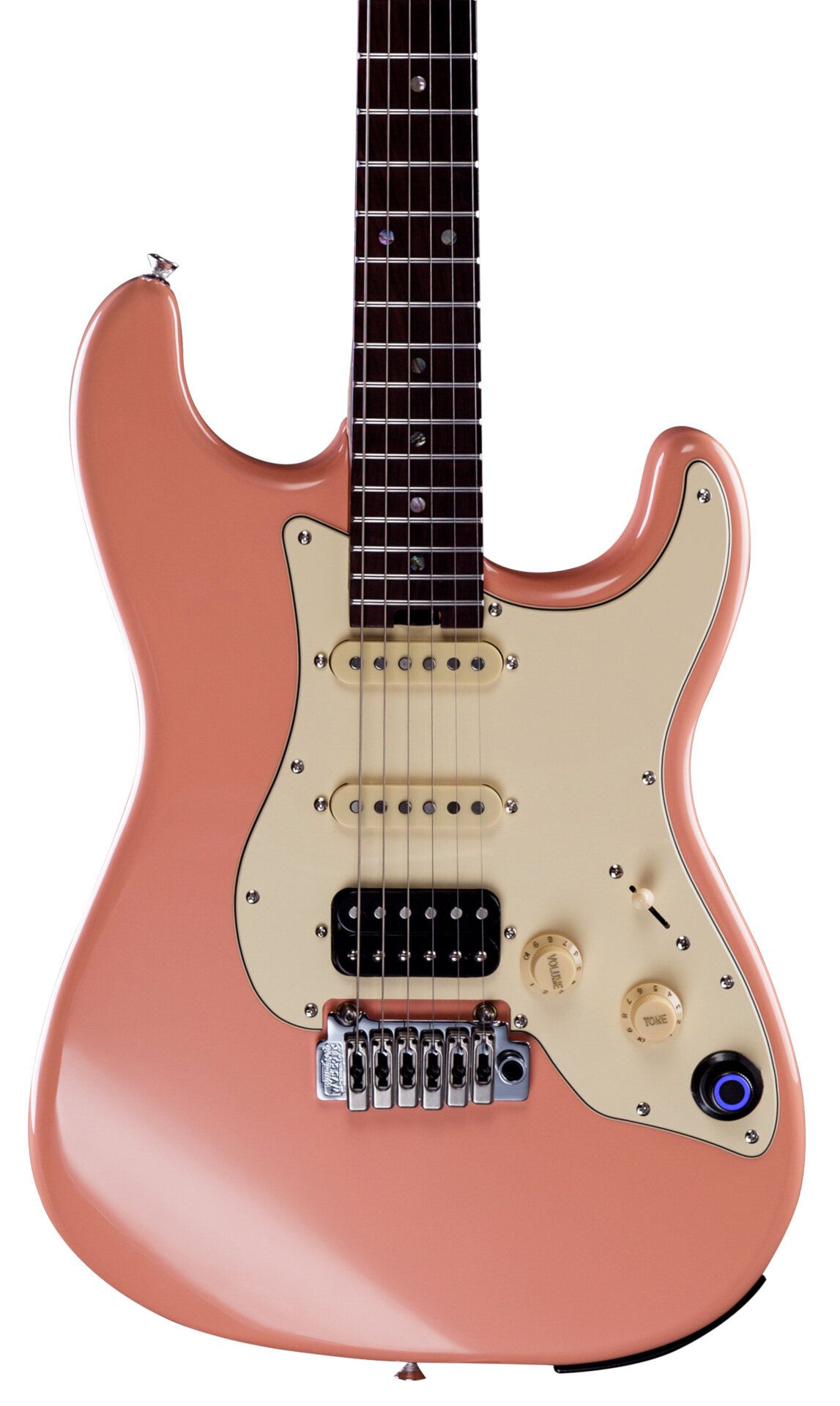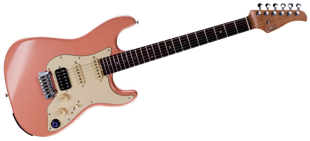 Mooer GTRS Guitars to nowoczesny produkt, oferujący kompletny i lekki system gitarowy, oparty na cyfrowo-analogowych rozwiązaniach. System ten rozpoczyna się od jedynej w swoim rodzaju gitary, wyposażonej w inteligentny procesor GTRS, zaprojektowany we współpracy z mistrzami z dziedziny lutnictwa i inżynierów dźwięku firmy Mooer. Gitara ta została zaprojektowana tak, aby funkcjonować wraz z dedykowaną jej aplikacją mobilną, oferując płynną integrację klasycznych stylów gitarowych i nowoczesnej, cyfrowej technologii symulacji. Dzięki zastosowaniu unikalnego pokrętła Super-Knob, GTRS może szybko dostosować się do różnych sytuacji za pomocą jednego przycisku. Model GTRS Professional 800 (P800) to wersja premium, wychodząca ponad gamę instrumentów Standard 800 (S800), jednocześnie z wszystkimi podstawowymi funkcjami jakie zawiera Standard 800, ale także z ulepszonym osprzętem i opcjami, których można oczekiwać od gitary wyższej klasy. P800 posiada korpus z amerykańskiej olchy, szyjkę z kanadyjskiego palonego klonu płomienistego, podstrunnicę z palisandru, blokowane klucze GTRS 18:1 i mostek Wilkinson VS 50 II. Zmodernizowano również pickupy, stosując bezszumowe przetworniki GTRS SCN-1N/M oraz humbucker GTRS HM-1B. Pokrętła Volume i Tone, a także przełącznik pickup, mogą być używane do kreowania brzmienia, bez martwienia się o żywotność baterii lub inne cyfrowe aspekty gitary GTRS. Bezpłatna aplikacja GTRS oferuje szeroką gamę narzędzi do kształtowania brzmienia gitary i pomaga w transmisji na żywo, nagrywaniu i ćwiczeniach. Po podłączeniu gitary GTRS przez Bluetooth, wszystkie presety można tworzyć czy edytować za pomocą aplikacji. Presety można zapisać na gitarze GTRS, a nawet przesłać do chmury, tak aby udostępnić innym użytkownikom. W przypadku streamerów na żywo, ekosystem GTRS umożliwia użytkownikom podłączenie gitary przez Bluetooth, jednocześnie wysyłając połączenie USB-OTG typu C do urządzenia mobilnego. Tworzy to kompletną konfigurację strumieniową z samą gitarą i telefonem! Te same połączenia mogą być również używane do nagrywania bezpośrednio w telefonie, na przykład podczas podróży. Aplikacja GTRS zawiera także narzędzia do codziennej praktyki i nauki, takie jak tuner, perkusja/metronom, spis akordów i prosty looper.- Mooer GTRS Guitars Professional 800 Intelligent Guitar (P800)- 6-strunowa gitara elektryczna z wbudowanym modułem GTRS Intelligent Processor System- łączy w sobie klasyczną gitarę elektryczną z nowoczesnymi opcjami cyfrowego projektowania brzmienia, modelowania barwy, presetów, różnych opcji wyjść i bezprzewodowego sterowania (poprzez opcjonalny bezprzewodowy przełącznik nożny GWF4)- darmowa aplikacja GTRS App służy za edytor dla gitary GTRS- wersja praworęczna- menzura 25.5 (647,7 mm)- konstrukcja bolt-on- korpus z amerykańskiej olchy- gryf z palonego klonu płomienistego (kształt standard C) w wykończeniu Sealed Satin- podstrunnica z palisandru- radius podstrunnicy 12- siodełko Graph Tech TUSQ- szerokość siodełka 42 mm- 22 progi stainless steel medium- pickup GTRS SCN-1N hum-cancelling (gyf)- pickup GTRS SCN-1M hum-cancelling (środek)- pickup humbucker Alnico V GTRS HM-1B (mostek)- aktywny moduł GTRS Intelligent Process System z wbudowaną baterią litowo-jonową GLB-P1- 10 godzin czasu użytkowania na baterii (15 godzin czasu standby)- kontrola Volume / Tone / Super-Knob (main output / preset)- 5-pozycyjny przełącznik wyboru pickupu- blokowane klucze GTRS (ratio 18:1)- zaczepy paska GTRS- mostek tremolo Wilkinson VS 50 II- osprzęt w kolorze chromu- struny .009 – .042- wykończenie Flamingo Pink (high-gloss)- kremowy pickguard- gniazdo 6,3 mm może być stosowane do cichego ćwiczenia na słuchawkach- bezpośrednie nagrywanie USB-OTG z smartfonem lub tabletem- 4 presety regulowane za pomocą Super-Knob- 11 symulacji gitarowych, 126 efektów, automat perkusyjny, metronom oraz 80 sekundowy looper w aplikacji GTRS App- funkcja tunera w aplikacji GTRS lub w (opcjonalnym) bezprzewodowym przełączniku nożnym GWF4 Wireless Footswitch- port USB-C z wyjściem USB-OTG dla nagrywania oraz ładowania- Bluetooth 5.0- zawiera pokrowiec GTRS, ramię tremolo, narzędzia regulacyjne, magnetyczny kabel USB-C