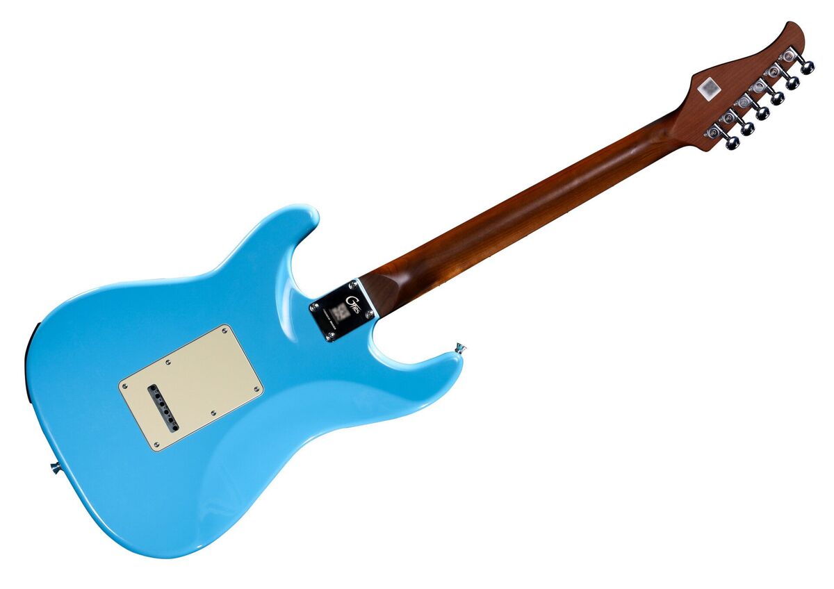 Mooer GTRS Guitars to nowoczesny produkt, oferujący kompletny i lekki system gitarowy, oparty na cyfrowo-analogowych rozwiązaniach. System ten rozpoczyna się od jedynej w swoim rodzaju gitary, wyposażonej w inteligentny procesor GTRS, zaprojektowany we współpracy z mistrzami z dziedziny lutnictwa i inżynierów dźwięku firmy Mooer. Gitara ta została zaprojektowana tak, aby funkcjonować wraz z dedykowaną jej aplikacją mobilną, oferując płynną integrację klasycznych stylów gitarowych i nowoczesnej, cyfrowej technologii symulacji. Dzięki zastosowaniu unikalnego pokrętła Super-Knob, GTRS może szybko dostosować się do różnych sytuacji za pomocą jednego przycisku. Model Standard 800 (S800) posiada korpus z amerykańskiej lipy, szyjkę z pieczonego klonu oraz palisandrową podstrunnicę, dzięki czemu nawet bez włączonego systemu GTRS i aplikacji otrzymujemy wszystkie doznania znane z tradycyjnej gitary. Konfiguracja przetworników S-S-H Alnico V to celowy wybór, zapewniający maksymalną elastyczność tonalną. Darmowa aplikacja GTRS oferuje szeroki wachlarz narzędzi do kształtowania brzmienia gitary, a także służy do bezpośredniego nagrywania i ćwiczeń, prowadzenia relacji na żywo. Po podłączeniu gitary GTRS przez Bluetooth, wszystkie presety mogą być dostosowywane i kształtowane za pomocą aplikacji, zapisane w gitarze GTRS, a nawet przesyłane do chmury, tak aby udostępnić je innym użytkownikom. Dla streamów na żywo, system GTRS pozwala użytkownikom na podłączenie gitary przez Bluetooth, jednocześnie używając łączności USB-OTG Typu C z urządzeniem mobilnym. W ten sposób powstaje kompletny zestaw do streamingu, wystarczy gitara GTRS i smartfon! Te same połączenia mogą być również wykorzystane do bezpośredniego nagrania gitary na telefon, gdziekolwiek jesteś. W aplikacji GTRS znajdziemy także narzędzia do codziennej praktyki i nauki, takie jak tuner, perkusja/metronom, słownik akordów i prosty, funkcjonalny looper.- Mooer GTRS Guitars Standard 800 Intelligent Guitar (S800)- 6-strunowa gitara elektryczna z wbudowanym modułem GTRS Intelligent Processor System- łączy w sobie klasyczną gitarę elektryczną z nowoczesnymi opcjami cyfrowego projektowania brzmienia, modelowania barwy, presetów, różnych opcji wyjść i bezprzewodowego sterowania (poprzez opcjonalny bezprzewodowy przełącznik nożny GWF4)- darmowa aplikacja GTRS App służy za edytor dla gitary GTRS- wersja praworęczna- menzura 25.5 (647.7 mm)- konstrukcja bolt-on- korpus z amerykańskiej lipy- gryf z jednoczęściowego pieczonego klonu (standardowe C) w naturalnym, satynowym wykończeniu- podstrunnica z palisandru- 12 radius podstrunnicy- kościane siodełko- szerokość siodełka 41.27 mm- 22 progi nickel silver jumbo- pickup GTRS SC-1N Alnico V single coil (gryf)- pickup GTRS SC-1M Alnico V single coil pickup (środek)- pickup GTRS HM-1B Alnico V humbucker pickup (most)- aktywny moduł GTRS Intelligent Process System z wbudowaną baterią litowo-jonową GLB-P1- 10 godzin czasu użytkowania na baterii (15 godzin czasu standby)- kontrola Volume / Tone / Super-Knob (main output / preset)- 5-pozycyjny przełącznik wyboru pickupu- zamknięte klucze w nowoczesnym stylu- zaczepy paska GTRS- dwupunktowy mostek tremolo GTRS- chromowany osprzęt- struny .009 – .042- wykończenie Sonic Blue- pickguard w kolorze kremowym- gniazdo 6,3 mm może być stosowane do cichego ćwiczenia na słuchawkach- bezpośrednie nagrywanie USB-OTG z smartfonem lub tabletem- 4 presety regulowane za pomocą Super-Knob- 9 symulacji gitarowych, 126 efektów, podkłady perkusyjne, metronom oraz 80-sekundowy looper w aplikacji GTRS App- funkcja tunera w aplikacji GTRS lub w (opcjonalnym) bezprzewodowym przełączniku nożnym GWF4 Wireless Footswitch- port USB-C z wyjściem USB-OTG dla nagrywania oraz ładowania- Bluetooth 5.0- zawiera pokrowiec GTRS, ramię tremolo, narzędzia regulacyjne, magnetyczny kabel USB-C