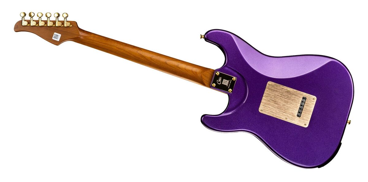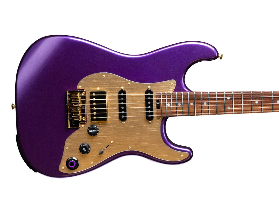 – Gitara MOOER GTRS została po raz pierwszy wprowadzona w 2021 roku i nadal toruje drogę filozofii MOOER w zakresie innowacyjnej technologii i elastyczności tonalnej z niezrównaną przystępnością cenową. Nowy model Standard 900 posiada korpus z lipy amerykańskiej, szyjkę z palonego klonu i podstrunnicę z palisandru. Konfiguracja przetwornika GTRS S-S-H alnico V została wybrana tak, aby zapewnić maksymalną elastyczność tonalną przy jednoczesnym przestrzeganiu sprawdzonych rozwiązań.- Wraz z S900 linia GTRS kontynuuje wojnę z kablami. Instrument wyposażony jest w najnowszy system MOOER GTRS Intelligent Processing System 2.0. Seria S dołącza zatem do serii gitar W, otrzymując bezprzewodowy nadajnik o ultra wysokiej częstotliwości, wbudowany w korpus gitary i zapewniający szybką i swobodną grę, która skraca czas konfiguracji sprzętu oraz znosi wszelkie problemy jakie można mieć w porównaniu z tradycyjną konfiguracją bezprzewodową.- Inżynierowie GTRS włożyli wiele wysiłku w stworzenie wysokiej jakości instrumentów, które brzmią rewelacyjnie nawet bez aktywnego modułu efektów MOOER. Czyste brzmienie gitary GTRS jest świetnie, pokrętła głośności i tonu, a także przełącznik przetwornika, mogą być używane do dostrajania brzmienia bez martwienia się o żywotność baterii lub wbudowany moduł efektowy. S900 zapewnia lepsze wrażenia w porównaniu z modelem 800 dzięki zastosowaniu wyselekcjonowanego złotego osprzętu (klucze, ramię tremolo, zaczepy paska i mostek). W serii S900 znajdziemy także bardziej ekskluzywne wykończenia, w kolorach Pearl Black, Pearl White, Racing Green i Plum Purple.- Mooer GTRS Guitars Standard 900 Intelligent Guitar (S900)- 6-strunowa gitara elektryczna ze zintegrowanym systemem GTRS Intelligent Process System i nadajnikiem bezprzewodowym- łączy w sobie klasyczną gitarę elektryczną z nowoczesnymi opcjami cyfrowego projektowania dźwięku, modelowania tonów, ustawień preset, różnych opcji wyjściowych i sterowania bezprzewodowego (opcjonalny przełącznik GWF4 Wireless Footswitch)- bezpłatna aplikacja GTRS działa jako oprogramowanie do edycji gitary GTRS- wersja praworęczna- menzura 25.5 (647,7 mm)- konstrukcja bolt-on- korpus z lipy amerykańskiej- jednoczęściowy gryf z palonego klonu (standardowy kształt litery C) z wykończeniem Natural Satin i dopasowaną główką- podstrunnica z palisandru- radius podstrunnicy 12- kościane siodełko- szerokość siodełka 41,27 mm- 22 progi nickel silver jumbo- pickup GTRS SC-1N Alnico V single coil (gryf)- pickup GTRS SC-1M Alnico V single coil (środek)- pickup GTRS HM-1B Alnico V humbucker (most)- aktywny inteligentny system procesowy GTRS z wbudowanym akumulatorem litowo-jonowym GLB-P1- do 12 godzin pracy na baterii na jednym ładowaniu (9 godzin przy korzystaniu z systemu bezprzewodowego)- kontrola Volume / Tone / Super-Knob (main output / preset control)- 5-pozycyjny przełącznik wyboru pickupu- zintegrowany nadajnik GTRS UHF Wireless- nowoczesne klucze z zamkniętymi przekładniami- zaczepy paska GTRS- dwupunktowe tremolo GTRS- złoty osprzęt- struny .009 – .046- wykończenie Plum Purple- pickguard z szczotkowanego metalu, w kolorze złotym- gniazdo 6,3 mm może być także stosowane do cichego ćwiczenia ze słuchawkami- bezpośrednie nagrywanie USB-OTG z smartfonem czy tabletem- 4 presety regulowane za pomocą Super-Knob- 11 symulacji gitary, 126 efektów gitarowych, automat perkusyjny, metronom i 80-sekundowy looper za pośrednictwem aplikacji GTRS- funkcja tunera za pośrednictwem aplikacji GTRS lub opcjonalnego bezprzewodowego przełącznika nożnego GWF4- wyjście USB-C do nagrywania USB-OTG i ładowania baterii- łączność Bluetooth 5.0- waga 3,4 kg / waga z pokrowcem 4,26 kg- w tym bezprzewodowy odbiornik GTRS UHF, torba koncertowa GTRS, ramię tremolo, klucze i kabel USB-C