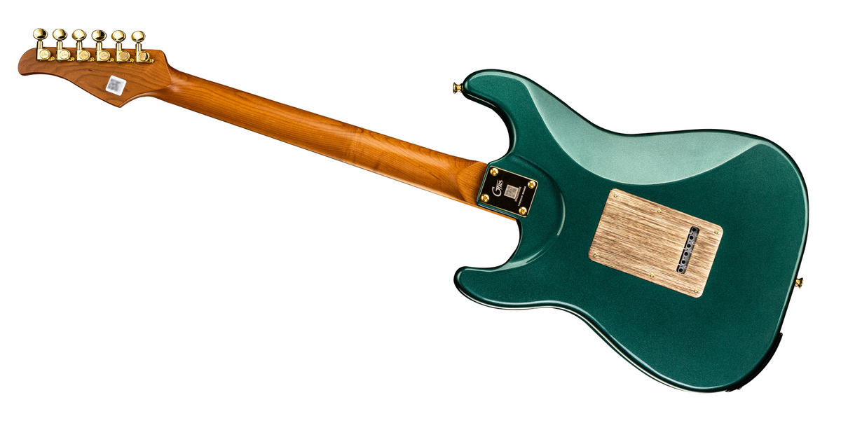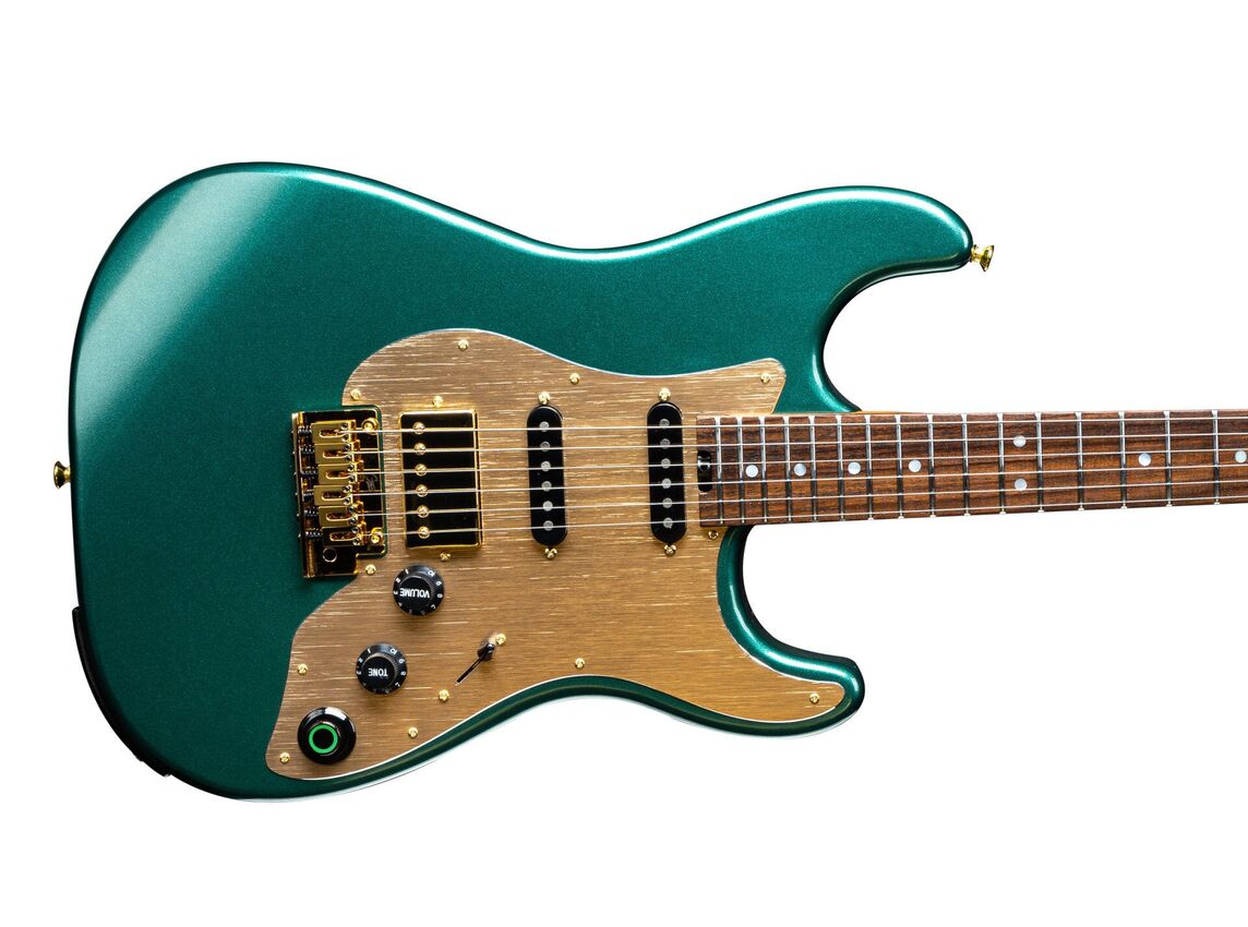 – Gitara MOOER GTRS została po raz pierwszy wprowadzona w 2021 roku i nadal toruje drogę filozofii MOOER w zakresie innowacyjnej technologii i elastyczności tonalnej z niezrównaną przystępnością cenową. Nowy model Standard 900 posiada korpus z lipy amerykańskiej, szyjkę z palonego klonu i podstrunnicę z palisandru. Konfiguracja przetwornika GTRS S-S-H alnico V została wybrana tak, aby zapewnić maksymalną elastyczność tonalną przy jednoczesnym przestrzeganiu sprawdzonych rozwiązań.- Wraz z S900 linia GTRS kontynuuje wojnę z kablami. Instrument wyposażony jest w najnowszy system MOOER GTRS Intelligent Processing System 2.0. Seria S dołącza zatem do serii gitar W, otrzymując bezprzewodowy nadajnik o ultra wysokiej częstotliwości, wbudowany w korpus gitary i zapewniający szybką i swobodną grę, która skraca czas konfiguracji sprzętu oraz znosi wszelkie problemy jakie można mieć w porównaniu z tradycyjną konfiguracją bezprzewodową.- Inżynierowie GTRS włożyli wiele wysiłku w stworzenie wysokiej jakości instrumentów, które brzmią rewelacyjnie nawet bez aktywnego modułu efektów MOOER. Czyste brzmienie gitary GTRS jest świetnie, pokrętła głośności i tonu, a także przełącznik przetwornika, mogą być używane do dostrajania brzmienia bez martwienia się o żywotność baterii lub wbudowany moduł efektowy. S900 zapewnia lepsze wrażenia w porównaniu z modelem 800 dzięki zastosowaniu wyselekcjonowanego złotego osprzętu (klucze, ramię tremolo, zaczepy paska i mostek). W serii S900 znajdziemy także bardziej ekskluzywne wykończenia, w kolorach Pearl Black, Pearl White, Racing Green i Plum Purple.- Mooer GTRS Guitars Standard 900 Intelligent Guitar (S900)- 6-strunowa gitara elektryczna ze zintegrowanym systemem GTRS Intelligent Process System i nadajnikiem bezprzewodowym- łączy w sobie klasyczną gitarę elektryczną z nowoczesnymi opcjami cyfrowego projektowania dźwięku, modelowania tonów, ustawień preset, różnych opcji wyjściowych i sterowania bezprzewodowego (opcjonalny przełącznik GWF4 Wireless Footswitch)- bezpłatna aplikacja GTRS działa jako oprogramowanie do edycji gitary GTRS- wersja praworęczna- menzura 25.5 (647,7 mm)- konstrukcja bolt-on- korpus z lipy amerykańskiej- jednoczęściowy gryf z palonego klonu (standardowy kształt litery C) z wykończeniem Natural Satin i dopasowaną główką- podstrunnica z palisandru- radius podstrunnicy 12- kościane siodełko- szerokość siodełka 41,27 mm- 22 progi nickel silver jumbo- pickup GTRS SC-1N Alnico V single coil (gryf)- pickup GTRS SC-1M Alnico V single coil (środek)- pickup GTRS HM-1B Alnico V humbucker (most)- aktywny inteligentny system procesowy GTRS z wbudowanym akumulatorem litowo-jonowym GLB-P1- do 12 godzin pracy na baterii na jednym ładowaniu (9 godzin przy korzystaniu z systemu bezprzewodowego)- kontrola Volume / Tone / Super-Knob (main output / preset control)- 5-pozycyjny przełącznik wyboru pickupu- zintegrowany nadajnik GTRS UHF Wireless- nowoczesne klucze z zamkniętymi przekładniami- zaczepy paska GTRS- dwupunktowe tremolo GTRS- złoty osprzęt- struny .009 – .046- wykończenie Racing Green- pickguard z szczotkowanego metalu, w kolorze złotym- gniazdo 6,3 mm może być także stosowane do cichego ćwiczenia ze słuchawkami- bezpośrednie nagrywanie USB-OTG z smartfonem czy tabletem- 4 presety regulowane za pomocą Super-Knob- 11 symulacji gitary, 126 efektów gitarowych, automat perkusyjny, metronom i 80-sekundowy looper za pośrednictwem aplikacji GTRS- funkcja tunera za pośrednictwem aplikacji GTRS lub opcjonalnego bezprzewodowego przełącznika nożnego GWF4- wyjście USB-C do nagrywania USB-OTG i ładowania baterii- łączność Bluetooth 5.0- waga 3,4 kg / waga z pokrowcem 4,26 kg- w tym bezprzewodowy odbiornik GTRS UHF, torba koncertowa GTRS, ramię tremolo, klucze i kabel USB-C
