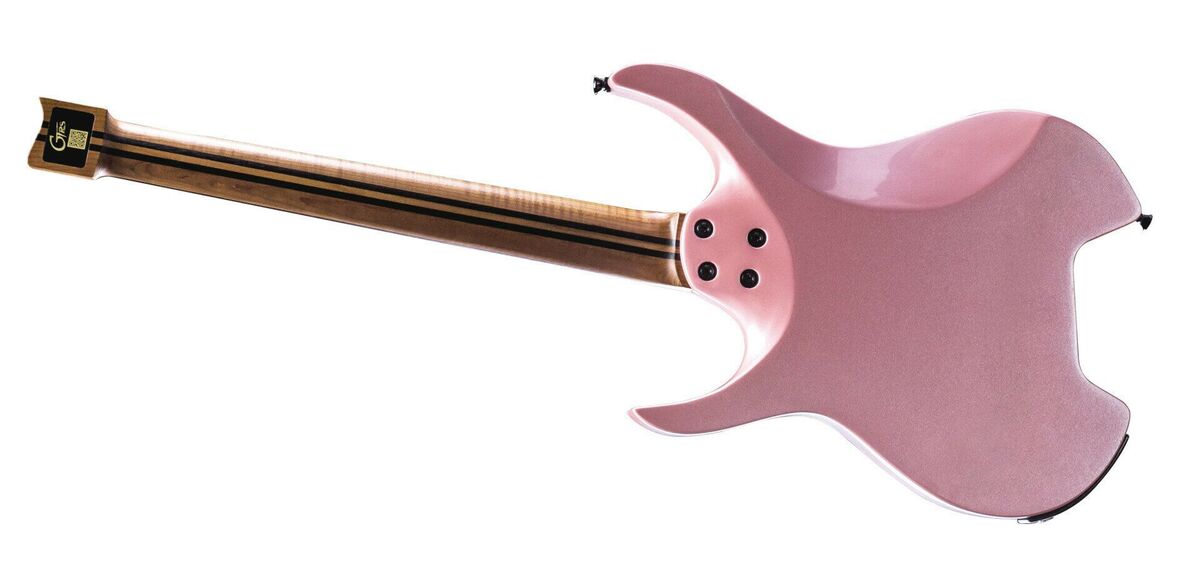 Gitary Mooer GTRS to następna generacja w nowoczesnej konstrukcji gitar, oferująca kompletny, lekki, cyfrowo-analogowy system gitarowy zbudowany od podstaw. System ten zaczyna się od wyjątkowej gitary wyposażonej w inteligentny procesor GTRS, połączenie opracowane we współpracy z mistrzami lutnictwa oraz inżynierami dźwięku Mooer. Gitara została zaprojektowana do współpracy z ich specjalnie opracowaną aplikacją, aby zaoferować bezproblemową integrację klasycznych stylów gitarowych i nowoczesnej technologii symulacji cyfrowej. Unikalne pokrętło Super Knob pozwala na szybkie dostosowanie GTRS do różnych sytuacji, wszystko za pomocą jednego przycisku. Kompaktowy i lekki model Wing 800 (W800) posiada korpus z amerykańskiej olchy, 5-częściowy gryf z palonego klonu i palisandru oraz palisandrową podstrunnicę z progami fanned fret, które zapewniają świetny feeling. Instrumenty GTRS oferują wszystkie funkcje normalnej gitary, gdy system GTRS i aplikacja są wyłączone. Seria W nie jest już wyposażona w konfigurację S-S-H znaną z modeli gitar S i P, ale w przetworniki humbucker GTRS HM-2N i HM-2B, zaprojektowane specjalnie dla inteligentnego systemu GTRS i zdolne do dostarczania pięknych dźwięków nawet po wyłączeniu systemu. Regulatory volume i tone, a także przełącznik pickupów, mogą być używane do optymalizacji brzmienia bez martwienia się o żywotność baterii lub inne cyfrowe aspekty gitary GTRS. Bezpłatna aplikacja GTRS oferuje wiele narzędzi do kształtowania brzmienia instrumentu i pomaga w streamingu na żywo, nagrywaniu i ćwiczeniu. Po podłączeniu gitary GTRS przez Bluetooth, wszystkie presety mogą być regulowane i edytowane za pośrednictwem aplikacji, zapisywane w gitarze GTRS, a nawet przesyłane do chmury w celu udostępnienia innym użytkownikom. Dla streamingu na żywo, system GTRS pozwala użytkownikom podłączyć gitarę przez Bluetooth, jednocześnie korzystając z połączenia USB-OTG Type-C z urządzeniem mobilnym. W ten sposób powstaje kompletna konfiguracja streamingowa wykorzystująca tylko gitarę i telefon! Te same połączenia mogą być również wykorzystane do mobilnego nagrywania na telefonie lub tablecie. W aplikacji GTRS zawarte są również narzędzia do codziennej praktyki i nauki, takie jak tuner, perkusja/metronom, tabela akordów i prosta funkcja loopera.- Mooer GTRS Guitars Wing 800 Intelligent Guitar (W800)- 6-strunowa gitara elektryczna z wbudowanym modułem GTRS Intelligent Processor System- łączy w sobie lekką i kompaktową gitarę elektryczną headless (z progami fanned fret), z nowoczesnymi opcjami cyfrowego projektowania brzmienia, modelowania barwy, presetów, różnych opcji wyjść i bezprzewodowego sterowania (poprzez opcjonalny bezprzewodowy przełącznik nożny GWF4)- darmowa aplikacja GTRS App służy za edytor dla gitary GTRS- wersja praworęczna- menzura typu multiskala 25,2 (640 mm) – 25,5 (648 mm)- konstrukcja bolt-on- korpus z amerykańskiej olchy- 5-częściowy gryf z przypalanego klonu płomienistego (profil standardowe C) z wykończeniem Natural Satin- podstrunnica z palisandru- 12 radius podstrunnicy- kościane siodełko oraz próg zerowy ze stali nierdzewnej- szerokość siodełka 42 mm- 24 progi nickel silver jumbo- przetwornik Custom GTRS HM-2N humbucker (gryf)- przetwornik Custom GTRS HM-2B humbucker (mostek)- aktywny moduł GTRS Intelligent Process System z wbudowaną baterią litowo-jonową GLB-P1- 10 godzin czasu użytkowania na baterii (15 godzin czasu standby)- kontrola Volume / Tone / Super-Knob (main output / preset)- 3-pozycyjny przełącznik wyboru pickupu- zaczepy paska GTRS- mostek GTRS HL-l- osprzęt w kolorze czarnym- struny .009 – .042- wykończenie Pearl Pink- pickguard z szczotkowanego metalu, kolor czarny- gniazdo 6,3 mm może być stosowane do cichego ćwiczenia na słuchawkach- bezpośrednie nagrywanie USB-OTG z smartfonem lub tabletem- 4 presety regulowane za pomocą Super-Knob- 11 symulacji gitarowych, 126 efektów, podkłady perkusyjne, metronom oraz 80-sekundowy looper w aplikacji GTRS App- funkcja tunera w aplikacji GTRS lub w (opcjonalnym) bezprzewodowym – port USB-C z wyjściem USB-OTG dla nagrywania oraz ładowania- Bluetooth 5.0- wymiary (S x D x W) 820 mm x 297 mm- waga około 2,7 kg, waga całkowita (z pokrowcem) 4,26 kg- zawiera pokrowiec GTRS, narzędzie do regulacji gryfu, 2x klucze imbusowe oraz kabel USB-C