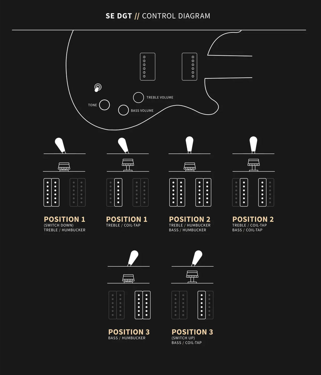 - Regulacja: 2x Głośność (push-pull), 1x Ton , 3-pozycyjny przełącznik Toggle