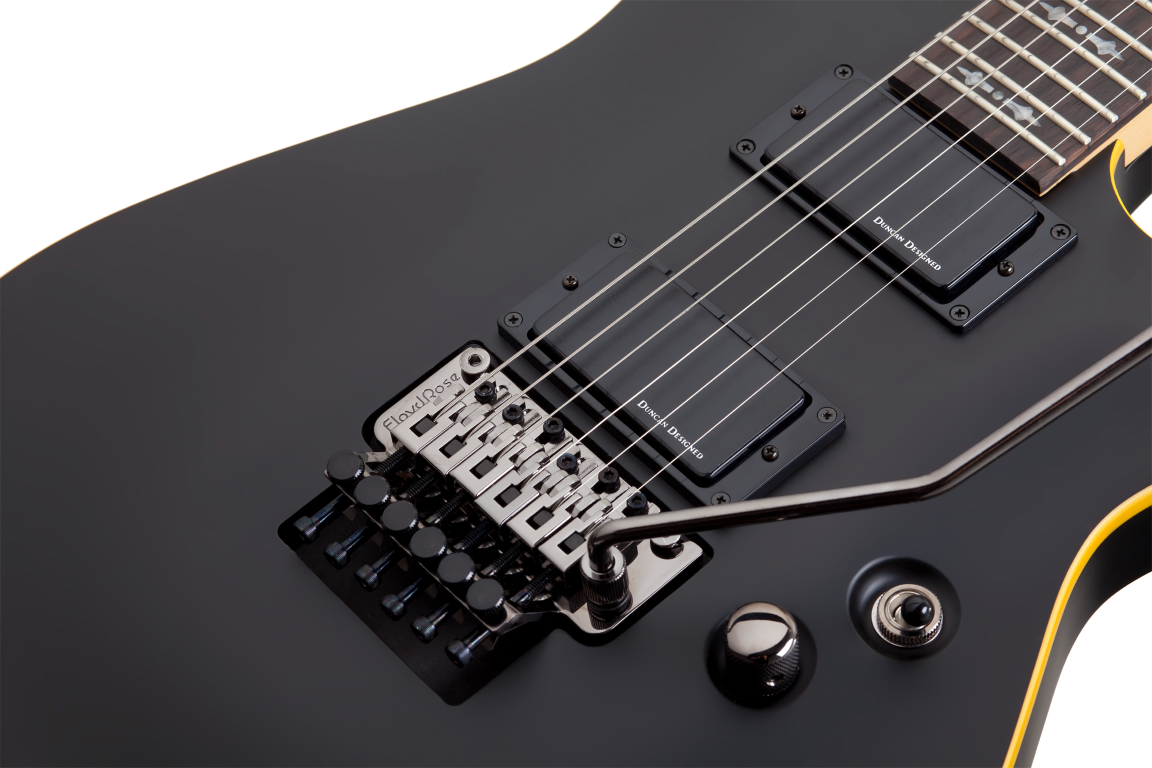 Gitary elektryczne z serii Demon są uzbrojone w dwa aktywne przetworniki Schecter HB-105, klucze Schecter i występują w wersjach z trzema rodzajami mostków. Dzięki czarnemu satynowemu wykończeniu, gotyckim krzyżom i osprzętowi z czarnego chromu, instrumenty z tej serii posiadają wygląd nie pozostawiający wątpliwości, że zostały stworzone do generowania dźwięków o dużej sile rażenia.