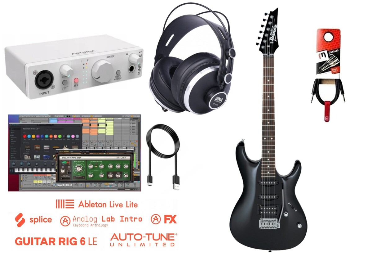 Elementy zestawy: 1x Gitara elektryczna (opis poniżej), 1x Interfejs Audio USB (Arturia MiniFuse 1 WH), 1x Słuchawki Studyjne (DNA ST-PRO), 1x Kabel gitarowy 3 metrowy (Reds Music GC1130BX)