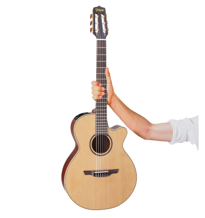 Bardzo wygodny gryf gitary Takamine P3FCN został wykonany z mahoniu, a podstrunnica i mostek zostały wykonane z palisandru. Dzięki odpowiedniej konstrukcji, wysokość strun jest niska, co sprawia, że są one miękkie i wygodne pod palcami. Codzienne ćwiczenia i długie występy staną się czystą przyjemnością. Warto zauważyć, że ten model posiada węższy gryf niż tradycyjne gitary klasyczne, co ułatwia precyzyjną grę. Szerokość na siodełku wynosi 47,6 mm.