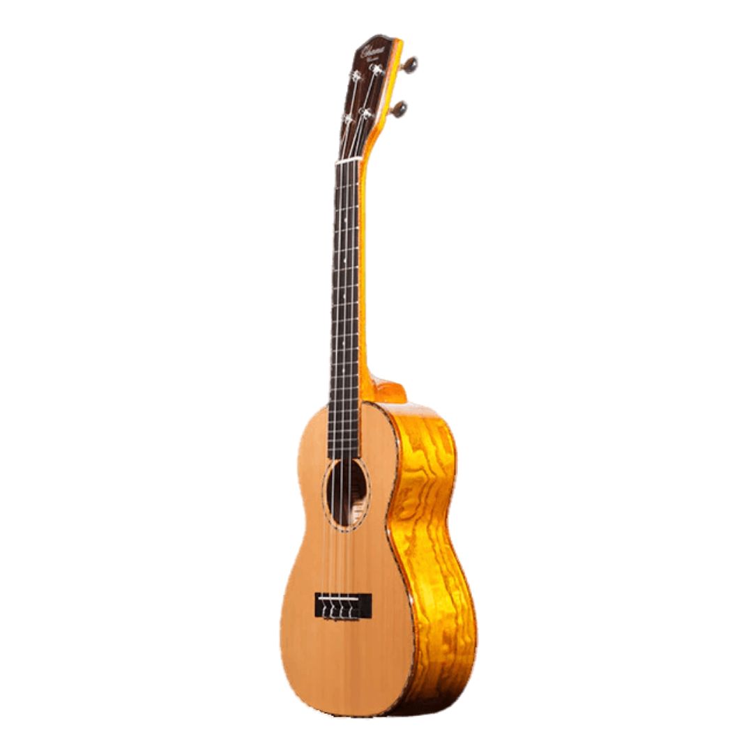 Ukulele CK-50WG wyróżnia się zastosowaniem wysokiej jakości materiałów, które mają kluczowy wpływ na jego brzmienie. Górna płyta wykonana z litego cedru nadaje instrumentowi ciepłe, bogate tony, które są charakterystyczne dla najlepszych ukulele. Tył i boki z drewna wierzbowego doskonale uzupełniają brzmienie, dodając mu głębi i charakteru. Połączenie tych dwóch gatunków drewna sprawia, że CK-50WG oferuje wyjątkowo zrównoważone i pełne brzmienie, które zachwyci nawet najbardziej wymagających muzyków.