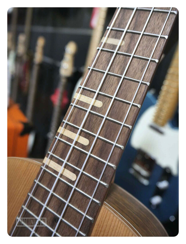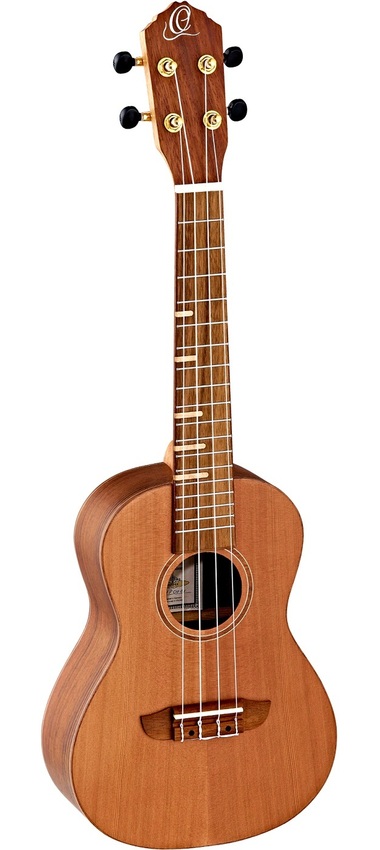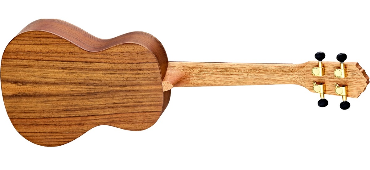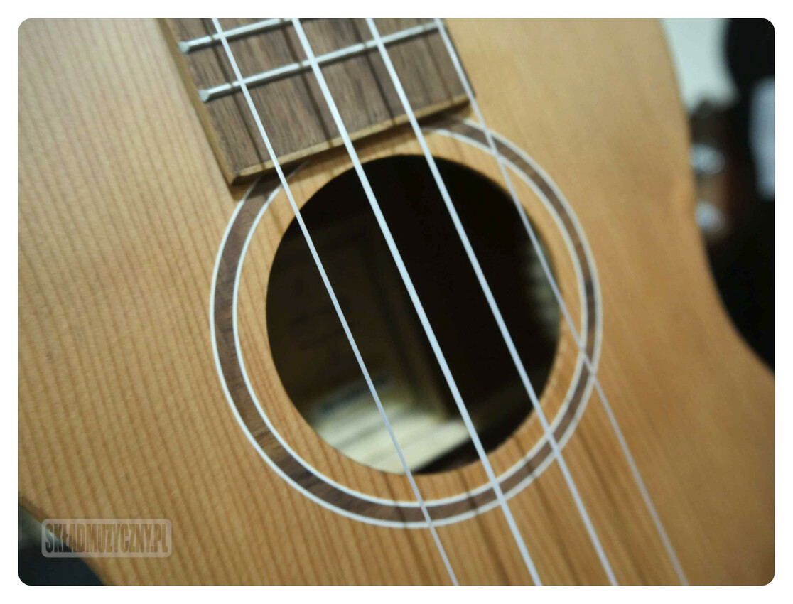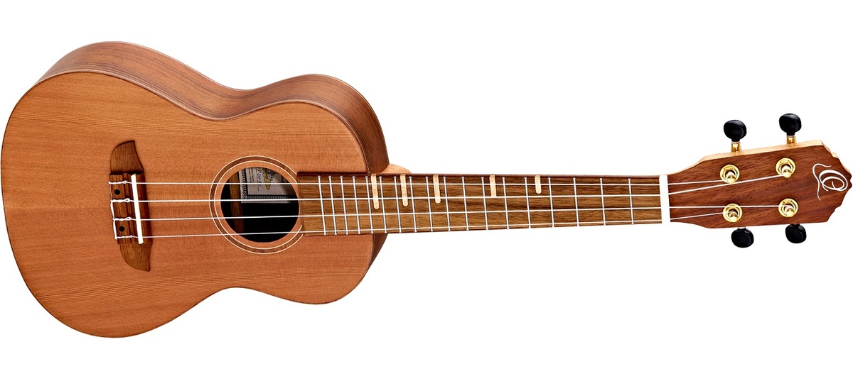 Model Ortega RUTI-CC to ukulele koncertowe, które na płycie wierzchniej ma lity cedr. Na bokach i z tyłu, a także na podstrunnicy i mostku mamy ceniony orzech, natomiast gryf to afrykańskie okoume. Nasze spojrzenie przyciągają wyjątkowe znaczniki progów, wykonane z klonowych tabliczek. Odpowiedniego stroju pilnują pozłacane klucze Ortega z czarnymi motylkami. Siodełko na gryfie, jak i mostkowe, są wykonane z solidnej kości.
