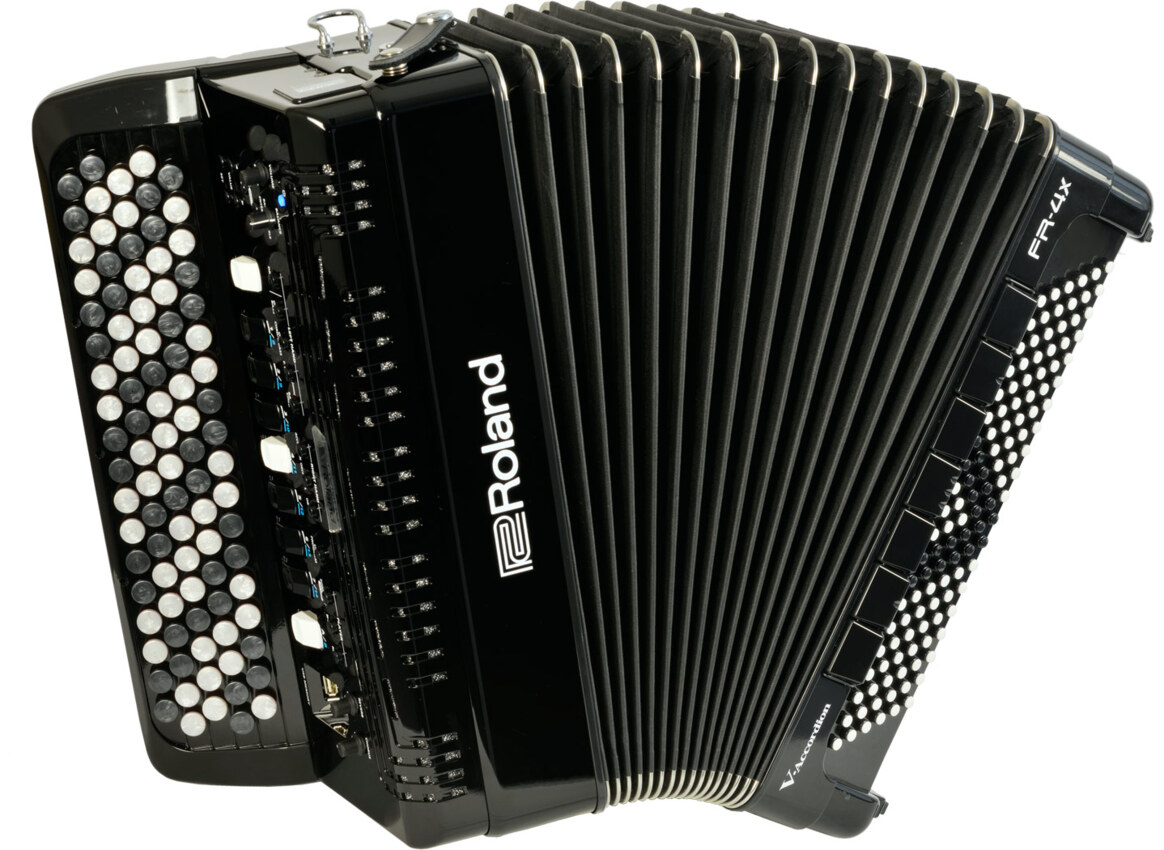 MOC I PRZENOŚNOŚĆ: CIĄG DALSZY V-AKORDEONOWEJ REWOLUCJIJest bardzo wiele rzeczy, które kocha się w akordeonie, od jego ekspresyjności po jego przenośność. Ale jeśli kiedykolwiek zastanawiałeś się, w którym miejscu uznana seria akordeonów V-Accordion firmy Roland mogłaby przejąć twoje występy, to nowy akordeon FR-4x daje szansę, aby się o tym dowiedzieć. Lekka i kompaktowa konstrukcja, reagujący na nacisk miech i pełnozakresowe głośniki sprawiają, że ten najnowszy model wydaje się być tak znany, jak ulubiony akordeon akustyczny. Dzięki temu samemu modułowi brzmieniowemu, jaki jest stosowany we flagowym modelu FR-8x, ten cyfrowy akordeon idzie jeszcze dalej. Do wyboru jest szeroki wachlarz akordeonowych brzmień z całego świata i można grać w ciszy, używając słuchawek lub podłączając się systemu nagłośnienia podczas występów na żywo. Można sterować innym sprzętem elektronicznym poprzez złącze MIDI lub rejestrować grę w podłączonej pamięci USB i dzielić muzyką z całym światem. Chociaż jego dźwięk i dotyk są uspokajająco tradycyjne, akordeon FR-4x firmy Roland to nowoczesny instrument.CHARAKTERYSTYKA: