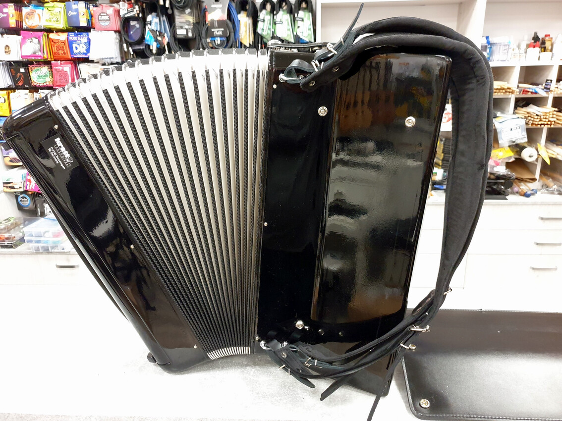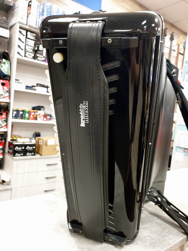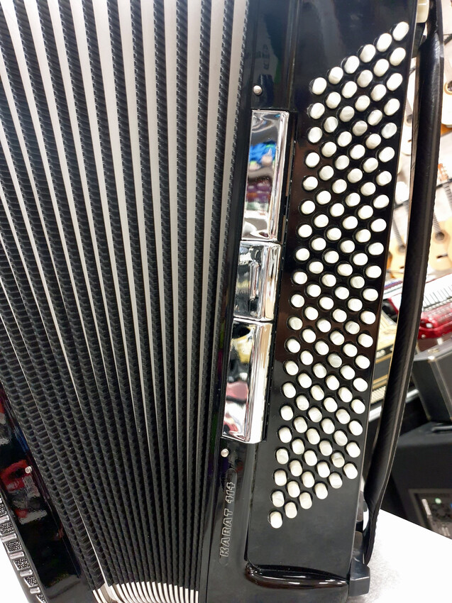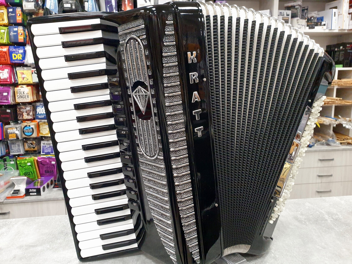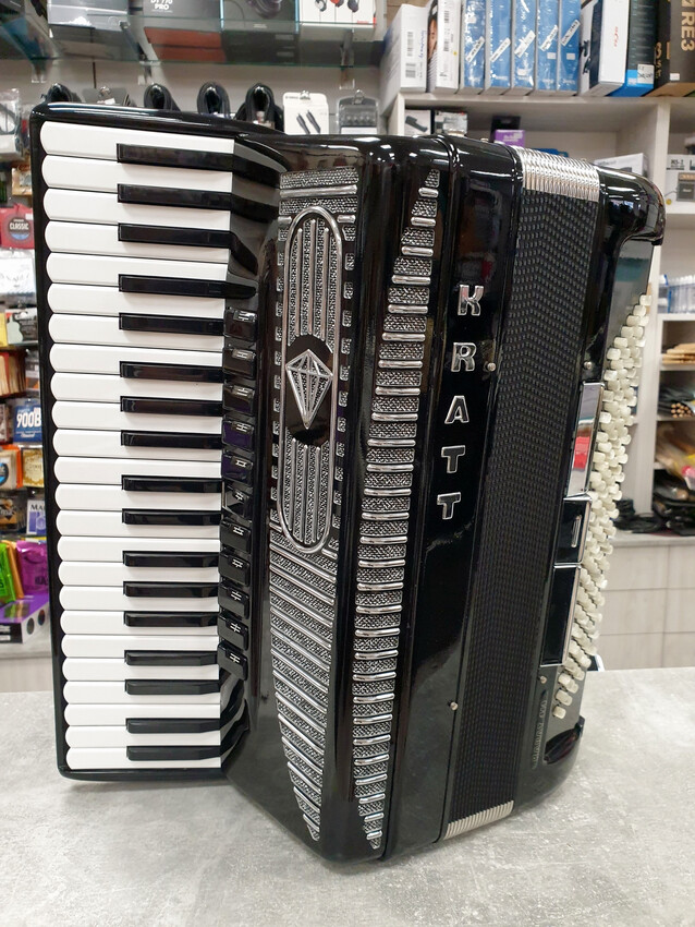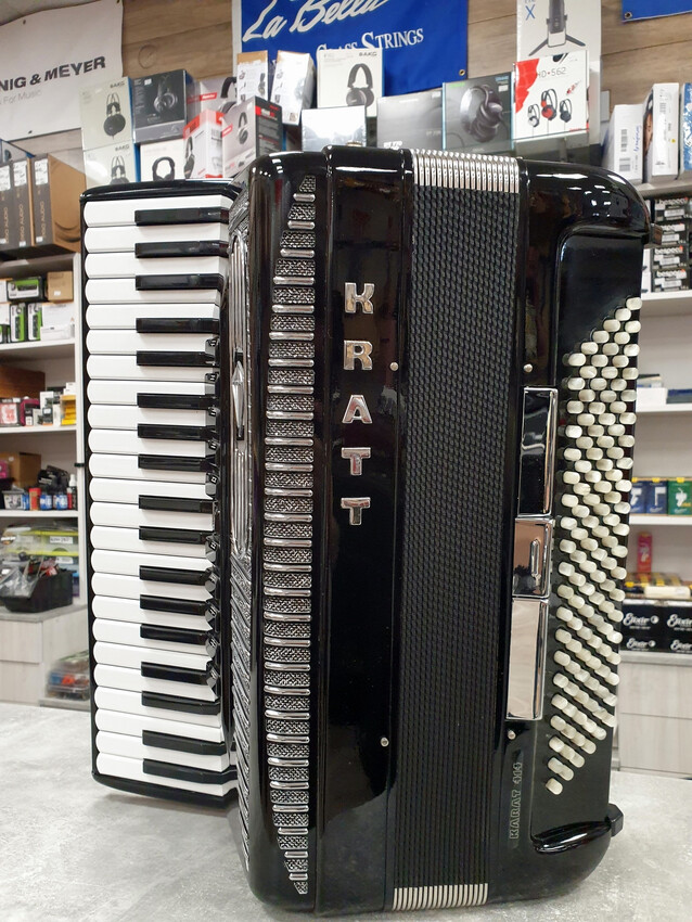 Akordeon po przeglądzie u specjalisty.Stan techniczny wzorowy – jak nowy z gwarancją, włoski akordeon zbudowany przez fabrykę FANTINI we Włoszech dla niemieckiego koncernu Kratt Musik.Model KARAT 414 ( stroiki ANTONELLI )- Dyskant: 4-chórowy (strojenie: 16+8+8+4)- Basy: 4-chórowe- Registry dyskantowe: 11- Registry basowe: 3- Oryginalny futerał w zestawie Akordeon w doskonałym stanie wizualnym i technicznym – został sprawdzony przez naszego fachowca. Prawdziwa okazja jeśli szukasz dobrego, sprawnego akordeonu wyprodukowanego w całości we Włoszech!