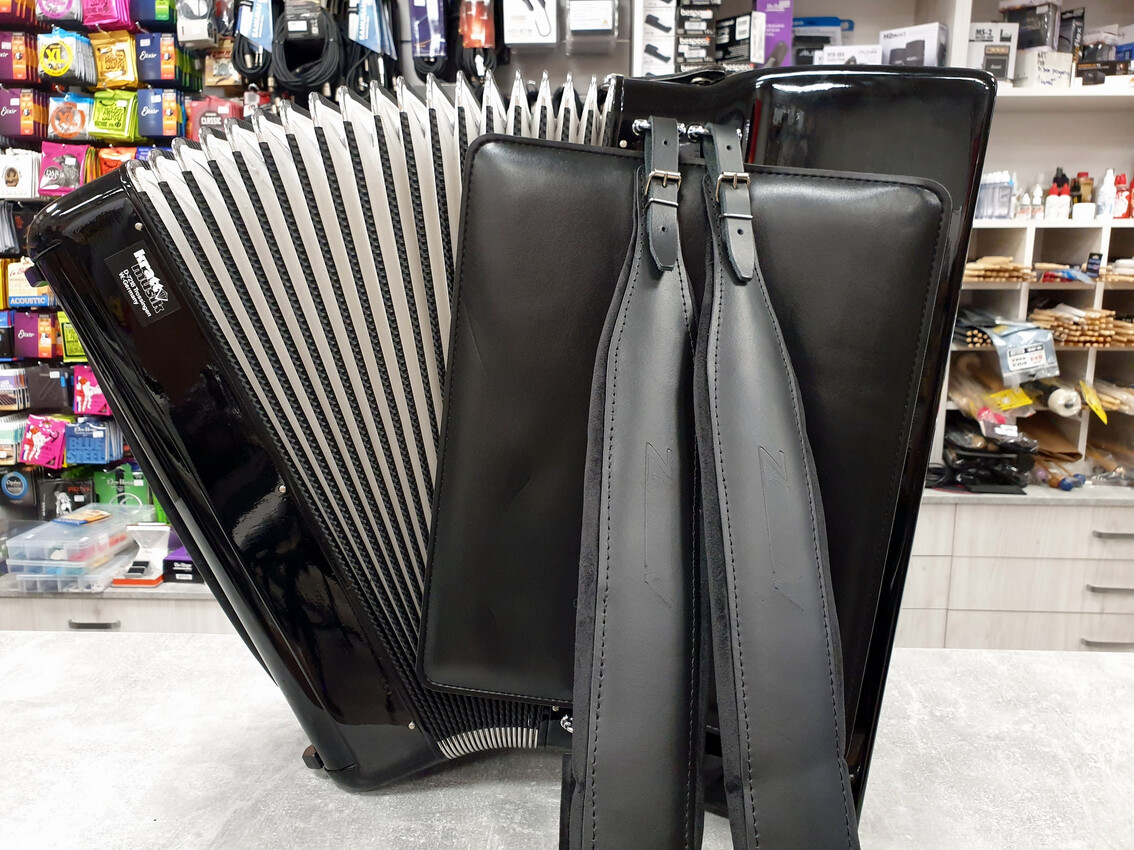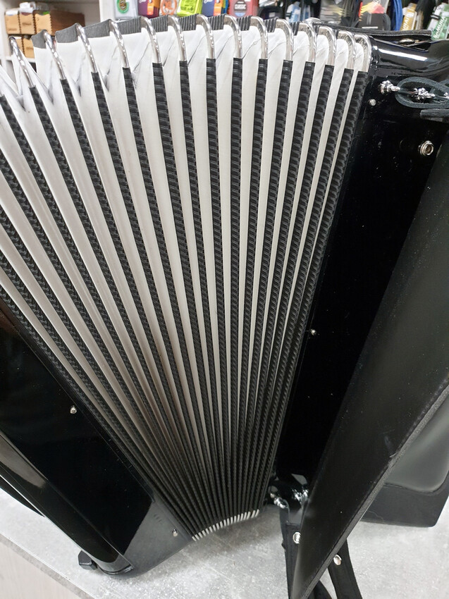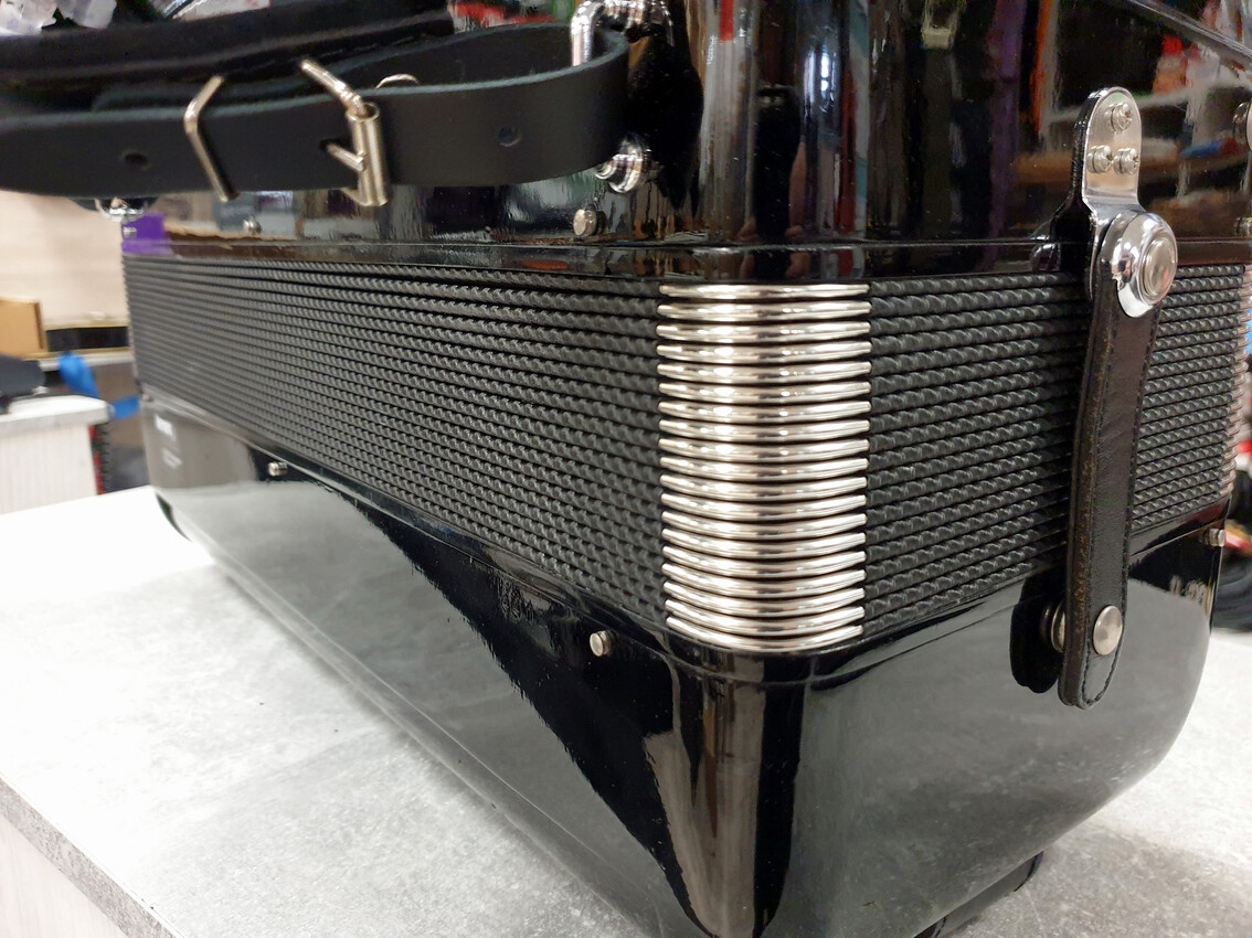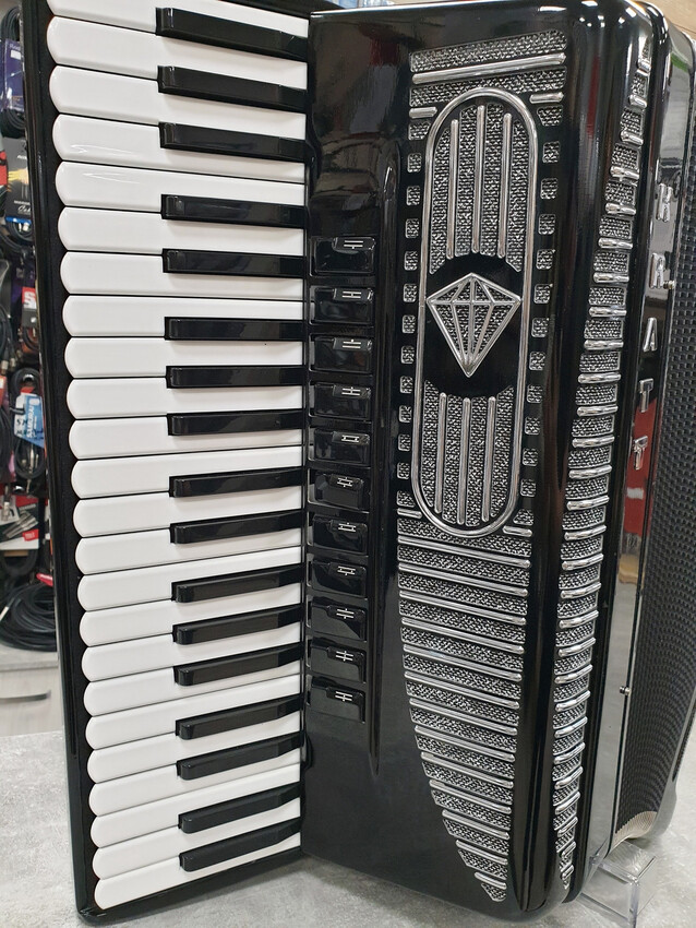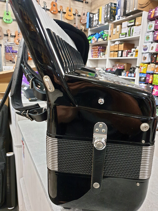 Akordeon po przeglądzie u specjalisty.Stan techniczny wzorowy – jak nowy z gwarancją, włoski akordeon zbudowany przez fabrykę FANTINI we Włoszech dla niemieckiego koncernu Kratt Musik.Model KARAT 414 ( stroiki ANTONELLI )- Dyskant: 4-chórowy (strojenie: 16+8+8+4)- Basy: 4-chórowe- Registry dyskantowe: 11- Registry basowe: 3- Oryginalny futerał w zestawie Akordeon w doskonałym stanie wizualnym i technicznym – został sprawdzony przez naszego fachowca. Prawdziwa okazja jeśli szukasz dobrego, sprawnego akordeonu wyprodukowanego w całości we Włoszech!