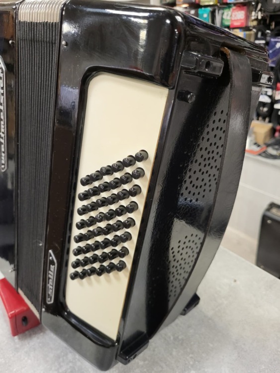 Akordeon sprawdzony przez pracownika sklepu muzycznego (akordeonista) – zawory i głosy czyste.