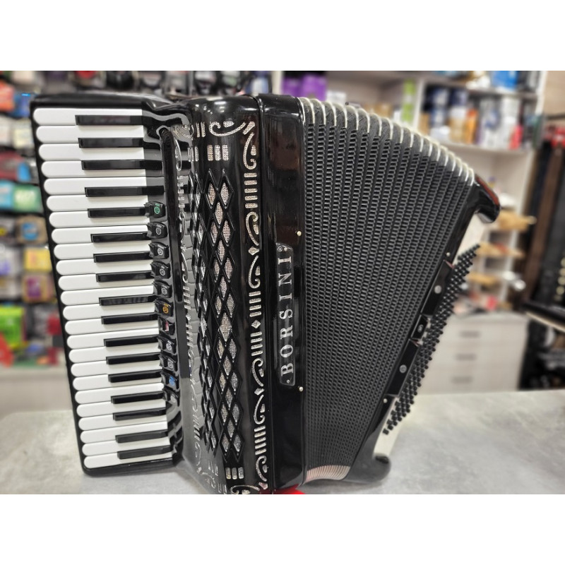 Oferujemy Państwu świetny, lekki i bardzo głośny akordeon do włoskiej marki BORSINI, 120-basowy w doskonałym stanie, w zestawie z futerałem.