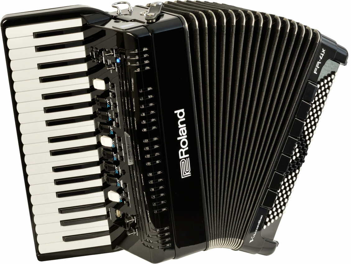 Ćwiczenia. Próba. Studio. Estrada. Akordeon FR-4x firmy Roland jest elastyczny, aby wspierać muzyka wszędzie tam, gdzie gra. Gniazdo słuchawkowe umożliwia ćwiczenie w domu bez niepokojenia sąsiadów, a gdy jesteś w drodze, mocny system nagłośnienia z dwoma głośnikami i głośnikiem wysokotonowym dostarczają wielki, pełnozakresowy dźwięk. Ambitni twórcy muzyki mogą nawet podłączyć zewnętrzne urządzenia MIDI, takie jak moduł BK-7m firmy Roland, aby używać sterowanego akompaniamentu. Muzycy koncertujący docenią fakt, że akordeon jest w pełni przygotowany do używania na estradzie, zapewniając bezpośrednią łączność z systemem nagłośnienia danej imprezy poprzez gniazdo wyjścia liniowego i eliminując bóle głowy, spowodowane próbami obstawiania mikrofonami tradycyjnego akordeonu.