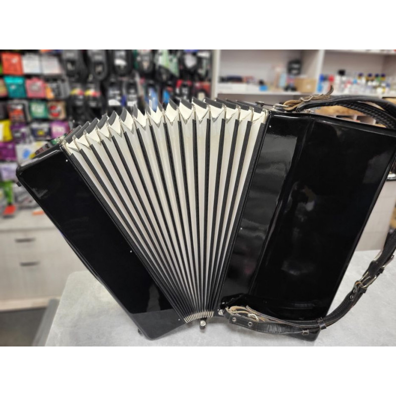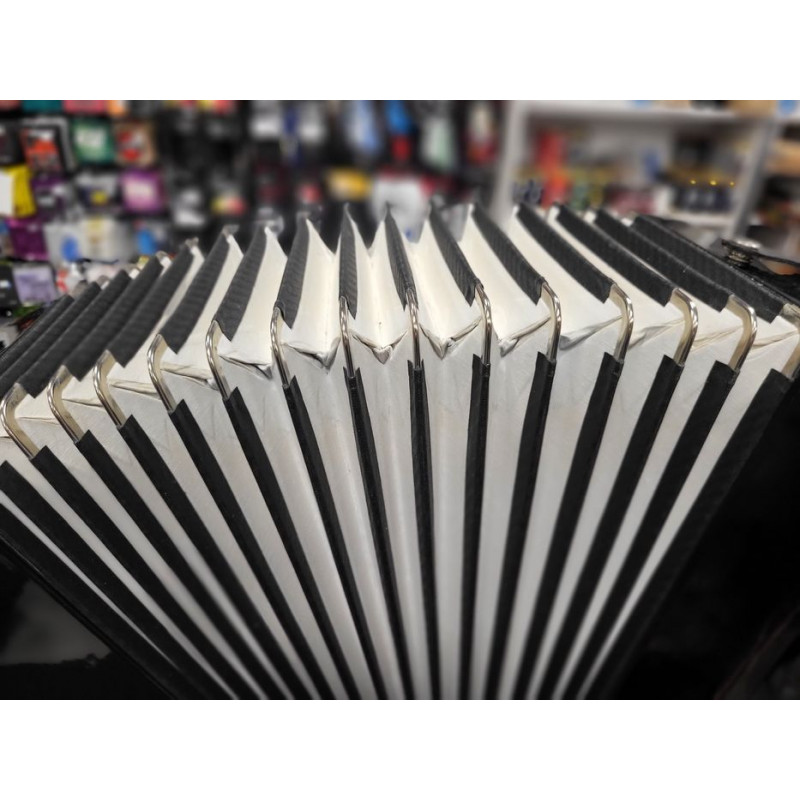 Bardzo solidnie wykonany instrument, ważący 11 kg – doskonała repetycja klawiatury guzikowej, solidne brzmienie basów dzięki obudowie z drewna i doskonała kompresja miecha.