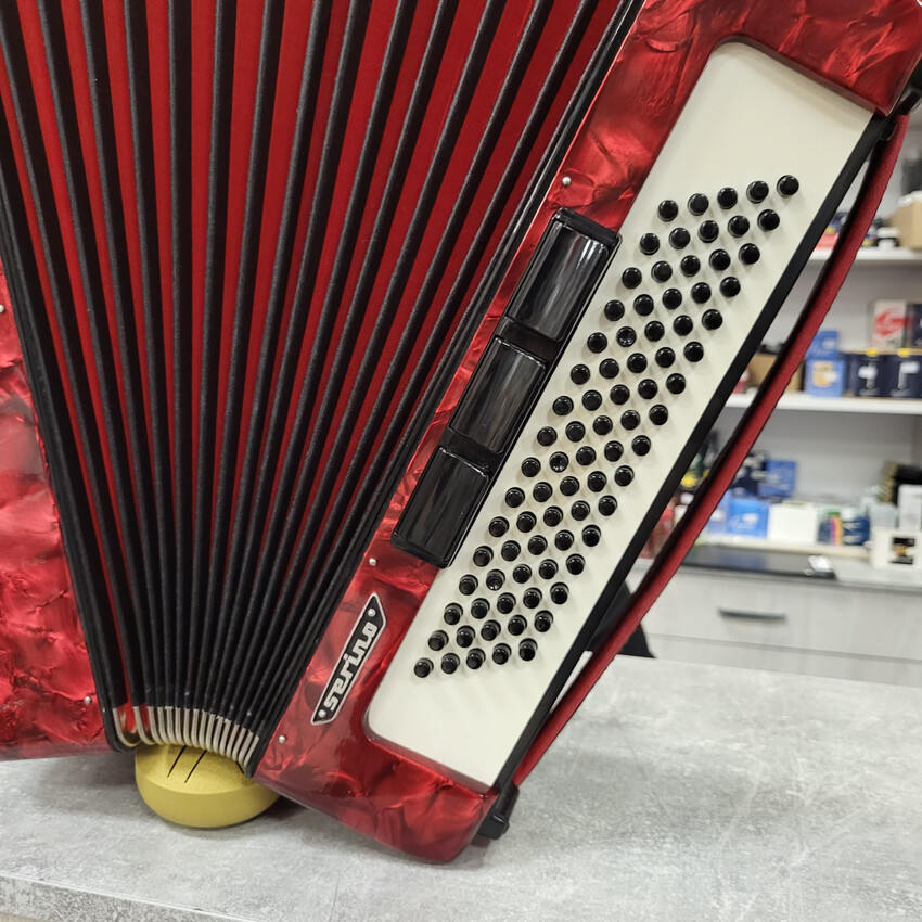 Piękny i oryginalny niemiecki akordeon WELTMEISTER mod. SERINO 80 basowy.Instrument wielkości 80 bas o głośnym i donośnym brzmieniu, w bardzo dobrym stanie z futerałem.Instrument bez większych śladów używania (kilka rys na klawiaturze), idealny także dla uczniów PSM.Czeka na swojego nowego właściciela!. Bardzo głośny i lekki instrument – doskonała repetycja klawiatury, solidne brzmienie basów dzięki obudowie z drewna i bardzo dobra kompresja miecha.Dyskant: 3 chóry Basy: 4 chóroweRegistry:DYSKANT: 5 BASY: 3Zdjęcia rzeczywiste.Głośnice idealne, głosy czyste (ORYGINALNE), bez nalotów.NIE WYMAGA ŻADNYCH NAKŁADÓW FINANSOWYCH.Stroi pięknie, niesamowicie głośny i dynamiczny, a przy tym dosyć lekki, tylko 8 kg.