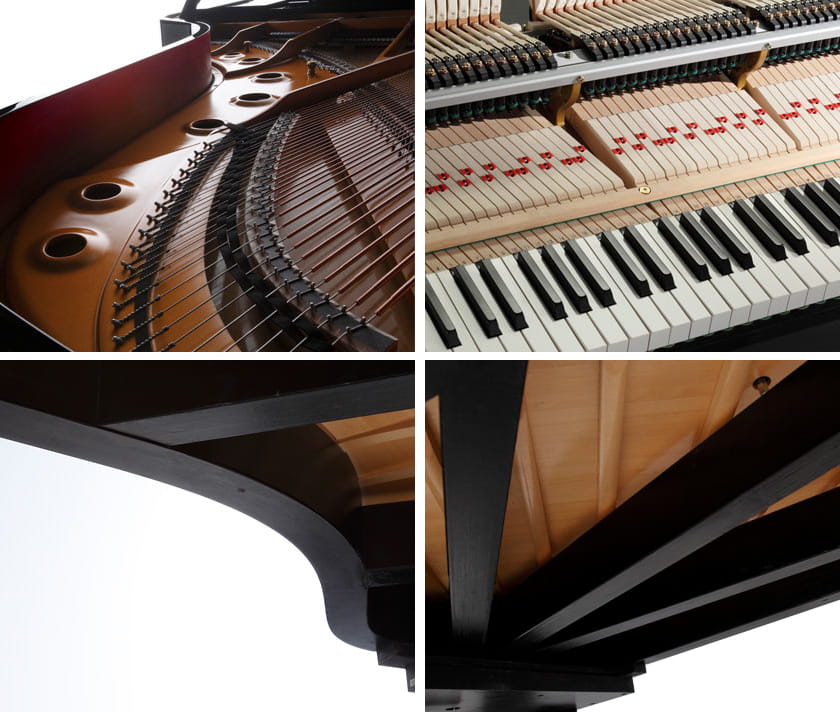 Wszystkie modele z serii GX posiadają akustycznie neutralne, żelazne ramy odlewane w technologii próżniowej. To na nich rozpięte są struny, których łączna siła naciągu liczona jest w tonach. Płyty muszą być więc bardzo wytrzymałe – i takie właśnie są. Zapewniają one fortepianom Kawai wytrzymałość, stabilność i optymalne rozchodzenie się dźwięku, a także niesamowity wygląd.