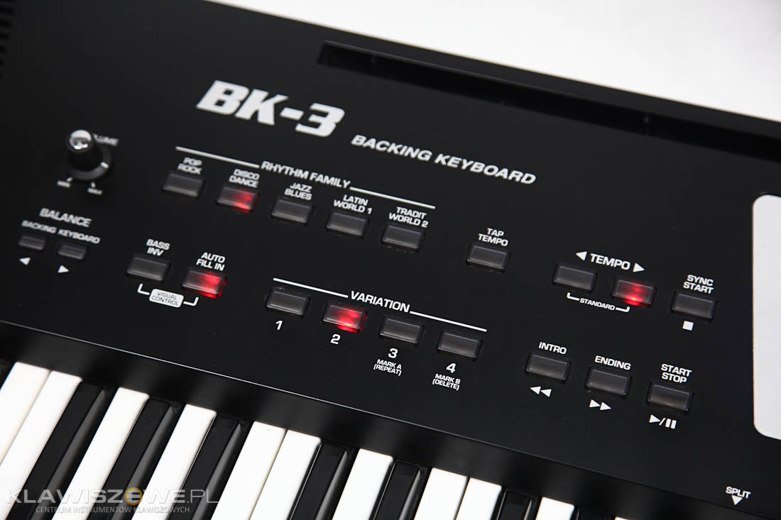 ROLAND BK-3: Twój Muzyczny Partner na Każdą Okazję Odkryj świat muzycznych możliwości z keyboardem Roland BK-3 – wszechstronnym instrumentem akompaniującym, idealnym zarówno dla solowych wykonawców, jak i zespołów. BK-3 łączy w sobie intuicyjną obsługę, bogate brzmienia, profesjonalne style akompaniamentu i wygodną przenośność, stając się niezastąpionym narzędziem dla każdego muzyka, niezależnie od poziomu zaawansowania. Potęga Brzmienia i Różnorodność Stylów Sercem BK-3 jest wysokiej jakości moduł brzmieniowy Roland, oferujący imponującą paletę ponad 850 brzmień, obejmujących szerokie spektrum instrumentów – od realistycznych fortepianów, organów i gitar, po syntezatory, instrumenty dęte i perkusyjne. Dzięki temu z łatwością znajdziesz idealne brzmienie do każdego gatunku muzycznego. Keyboard wyposażono w ponad 300 wbudowanych stylów akompaniamentu, które ożywią Twoją grę, dodając bogate aranżacje dopasowane do akordów, które grasz lewą ręką. Style te pokrywają różnorodne gatunki muzyczne z całego świata, od popu i rocka, przez jazz i country, aż po muzykę latynoską, europejską i wiele innych. Każdy styl zawiera kilka wariacji, przejść i zakończeń, co pozwala na tworzenie dynamicznych i interesujących aranżacji. Intuicyjna Obsługa i Kreatywne Narzędzia Panel sterowania BK-3 został zaprojektowany z myślą o łatwości użytkowania. Czytelny wyświetlacz LCD zapewnia przejrzysty dostęp do wszystkich funkcji i ustawień. Dedykowane przyciski do wyboru brzmień, stylów, tempa i innych parametrów sprawiają, że nawigacja po instrumentach jest szybka i intuicyjna. BK-3 oferuje również szereg przydatnych funkcji dla kreatywnych muzyków: