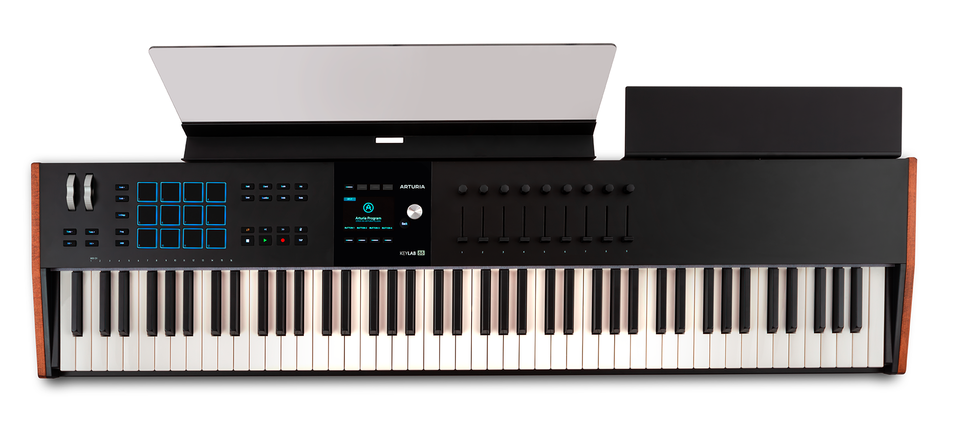 Pełnowymiarowa klawiatura młoteczkowa z aftertouch i integracja z oprogramowaniem oraz DAW na wyższym poziomie, zamknięta w wytrzymałych materiałach wysokiej jakości i panelach bocznych z twardego drewna – Arturia KeyLab 88 Mk3 nie tylko wygląda, ale wytrzyma próbę czasu zarówno na scenie jak i w studiu.