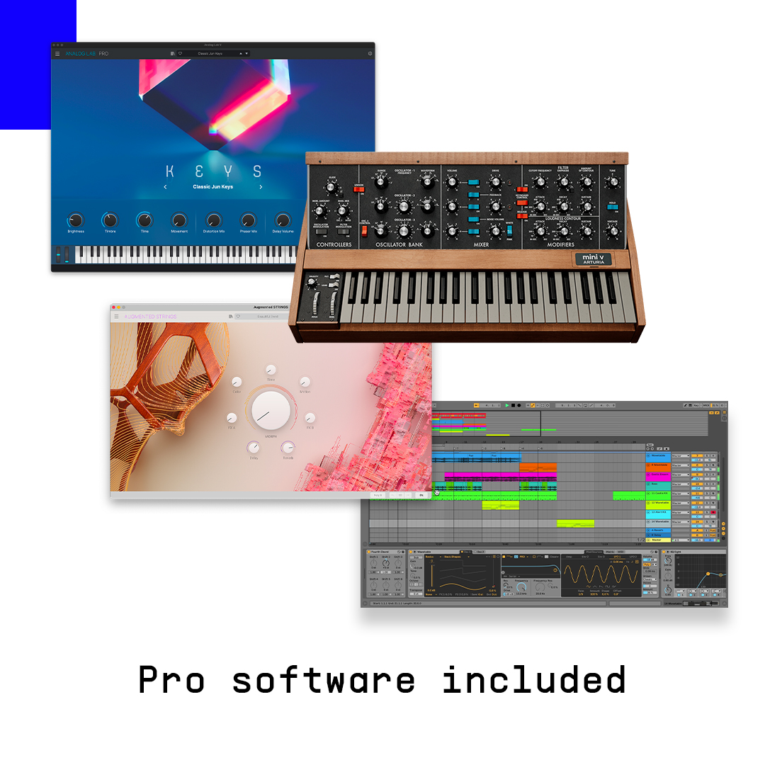 Odkryj pakiet profesjonalnego oprogramowania w zestawie! Dzięki Analog Lab Pro, Ableton Live Lite i gamie ponadczasowych instrumentów ze światowej sławy kolekcji V Collection, możesz od razu zacząć tworzyć muzykę.