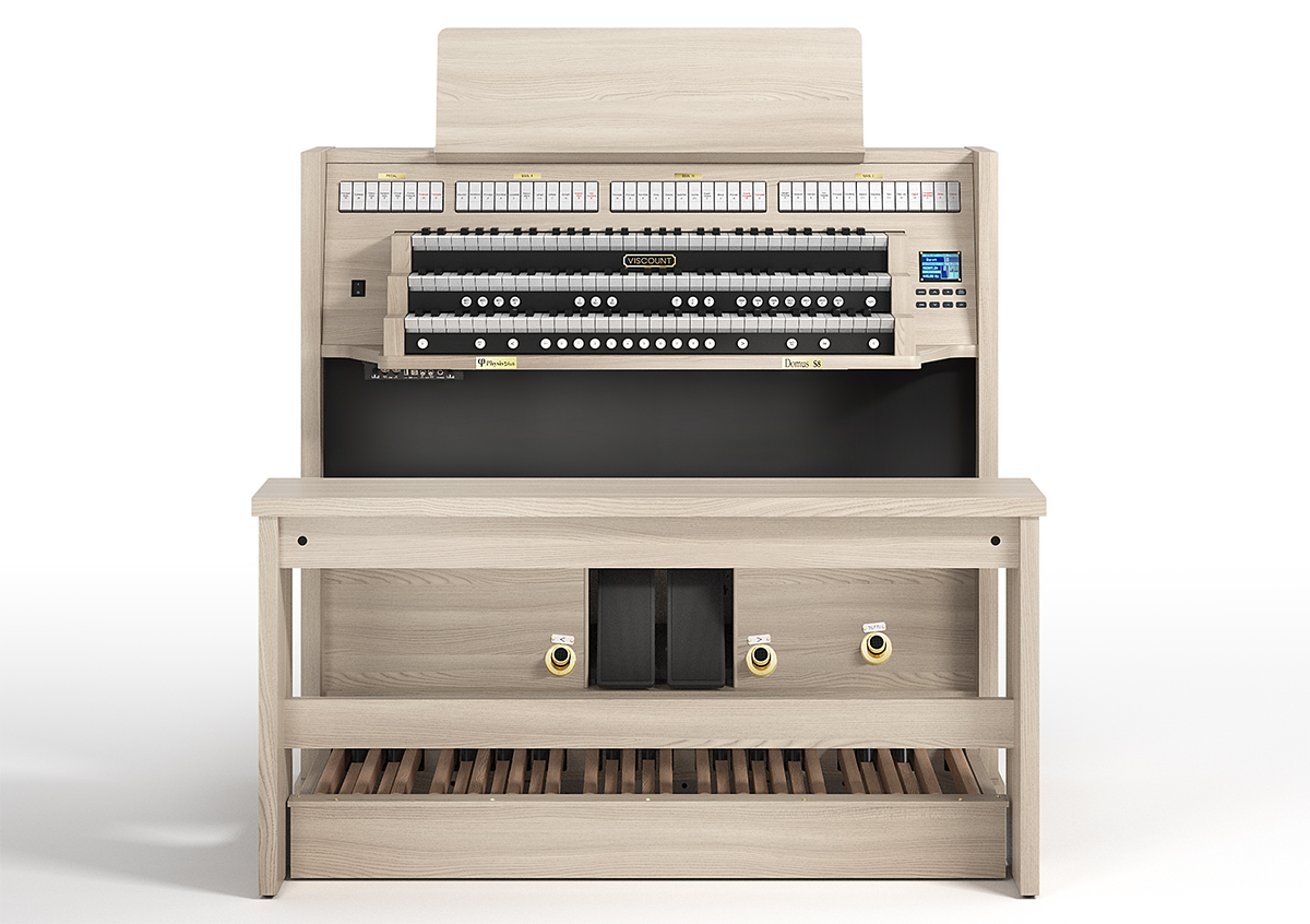 Dzięki 45 głosom organowym oraz (+ 4 orkiestrowym ) i podwójnemu pedałowi ekspresji, Domus S8 integruje ważne nowe funkcje pod względem funkcjonalności i edytora. Wyposażony w cyfrowy wzmacniacz Viscount, zapewnia również maksymalną wydajność i oszczędności w zakresie energii elektrycznej i emisji CO2. Domus S8, podobnie jak wszystkie organy z linii Domus, zawiera system wzmocnienia z dwoma głośnikami niskotonowymi z możliwością zarządzania dźwiękiem za pomocą edytora, który gwarantuje bardzo satysfakcjonujące wrażenia dźwiękowe. W granych nutach słychać szczegóły brzmienia piszczałek organowych, które wraz z wieloma dodatkowymi głosami dają maksimum pod względem brzmienia i elastyczności.
