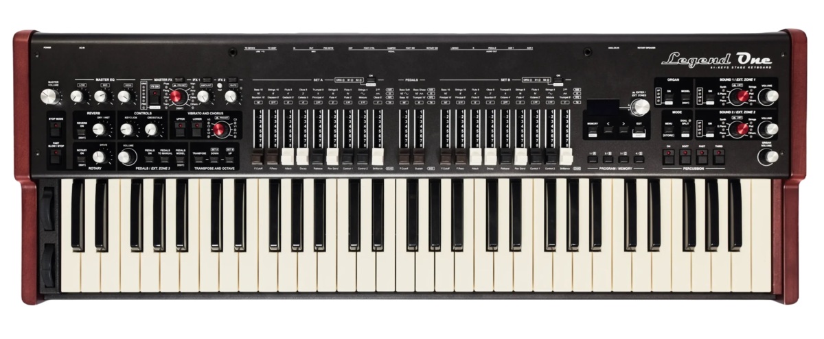 Cztery sekcje brzmieniowe: Oprócz sekcji organowej, Legend ONE posiada dwie dodatkowe sekcje dźwiękowe (Sound 1 i Sound 2) oraz sekcję Pedals, oferując szeroki wybór brzmień, w tym akustyczne i elektryczne pianina, syntezatory, smyczki i wiele innych.
