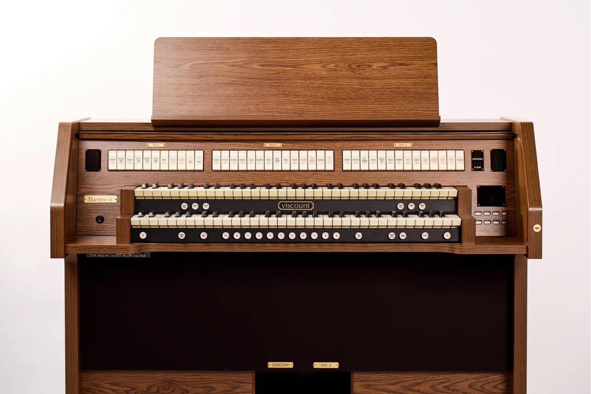 Viscount Maestro 45 wnosi majestatyczne doświadczenie dużych organów piszczałkowych do szkoły, małej sali koncertowej lub kościoła. Dzięki innowacyjnej technologii Physis+ i zaawansowanemu systemowi AcuSphere Reverb poczujesz się jak w imponującej katedrze – nawet grając w domu. Percepcja przestrzeni i dźwięku jak nigdy dotąd. Dzieląc techniczną doskonałość Maestro 40, ale wzbogacony o klasyczną obudowę i zamykaną roletę na klawiatury.